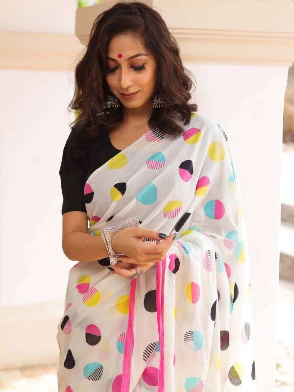 Title | 101 KALAVATI SOFT PURE COTTON WHITE AND PINK BLOCK PRINT SAREE WITH BLOUSE DEALER |