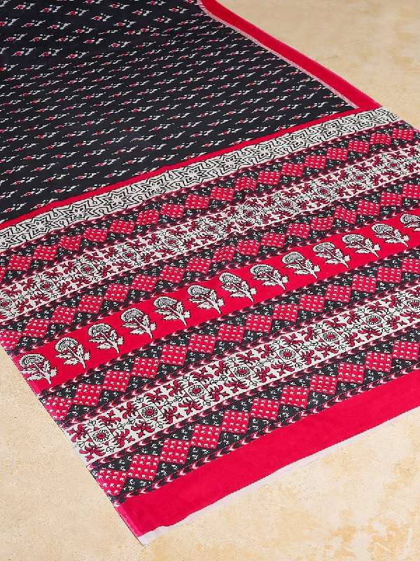 105-EVERLY FABRICS : *Soft Pure Cotton* SAREES : *6.30 MTR JAIPUR HAND BLOCK IKKAT PRINT SAREES COLOUR : GREAY & PINK *SINGLE COLOUR*