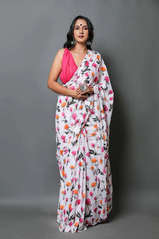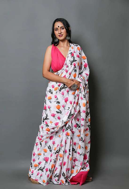 106 GULABOO LUXURY BAGRU FLOWER PRINT SAREES WITH PINK PLAIN BLOUSE BUY ONLINE