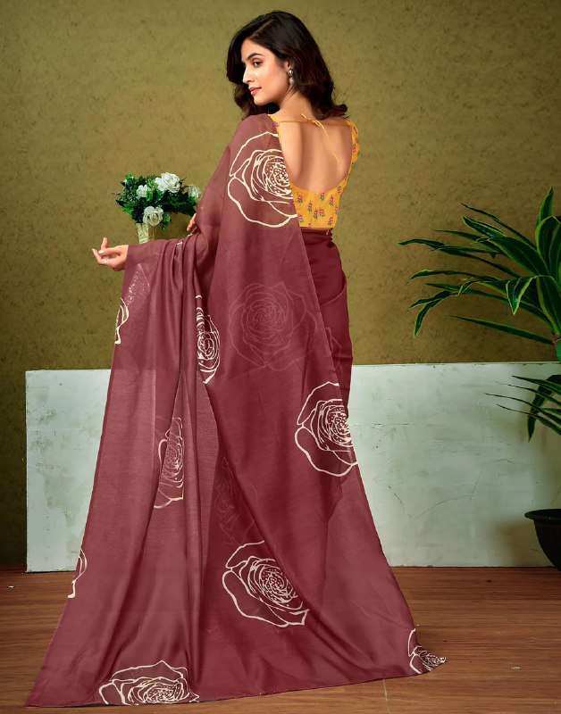 107-ROSE FABRICS : *Soft Pure Cotton* SAREES : *6.30 MTR BAGRU ROSE FLOWER PRINT SAREES WITH PRINTED BLOUSE *SINGLE COLOUR*