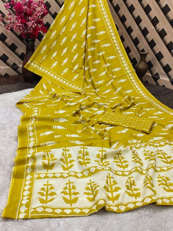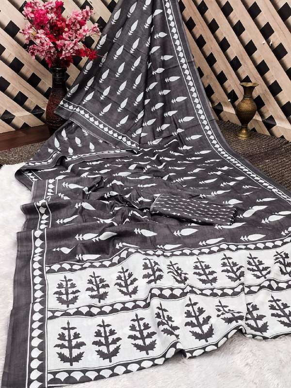 114 EVERLY LUXURY STYLE WOMEN BLOCK PRINT COTTON SAREE COLLECTION ETHNIC SHOP