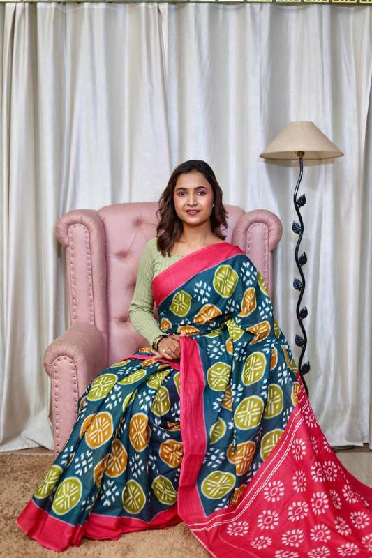 SKU :- 23-ANGRAKHA_BLACK 23-ANGRAKHA_DARK TEAL 23-ANGRAKHA_MAROON 23-ANGRAKHA_OLIVE GREEN FABRICS : MULMUL COTTON SAREES : 5.50 MTR APPROX PURE MULMUL COTTON IKKAT HAND PRINTED SAREES BLOUSE : 0.80 MTR APPROX RUNING PURE COTTON SEM AS PHOTO BLOUSE PICE ➡️ 4 PCS. CATLOG