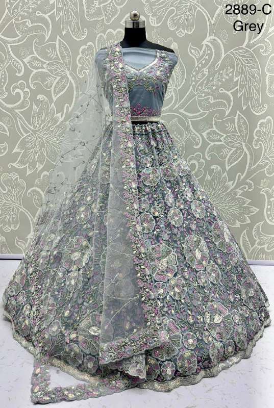 2889 EXTRAORDINARY FLOWER EMBROIDERY DESIGNER PARTY WEAR LEHENGA CHOLI WEAR EXPORT