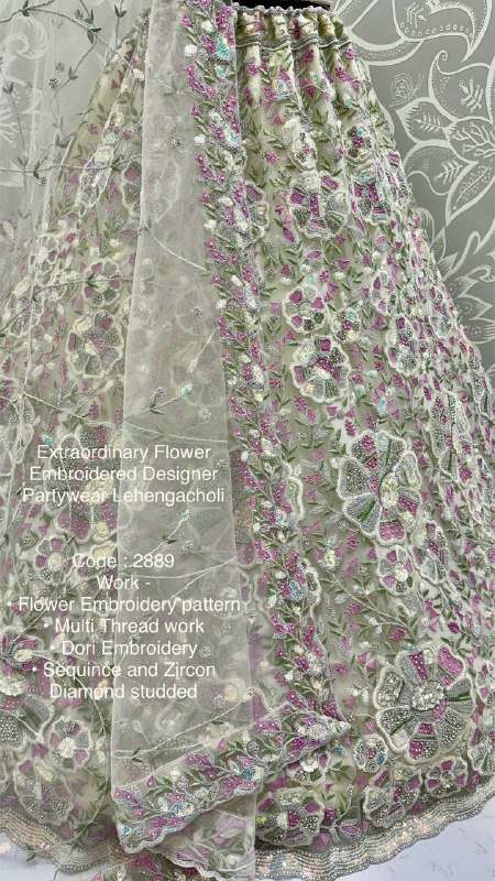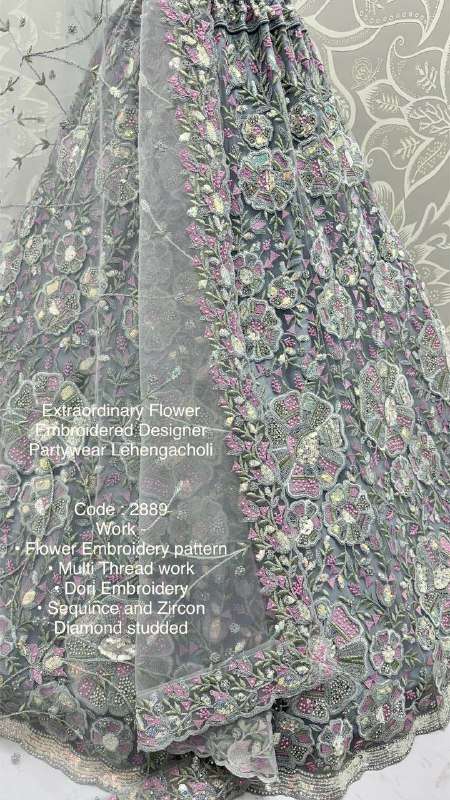 | Title | 2889 EXTRAORDINARY FLOWER EMBROIDERY DESIGNER PARTY WEAR LEHENGA CHOLI WEAR EXPORT |