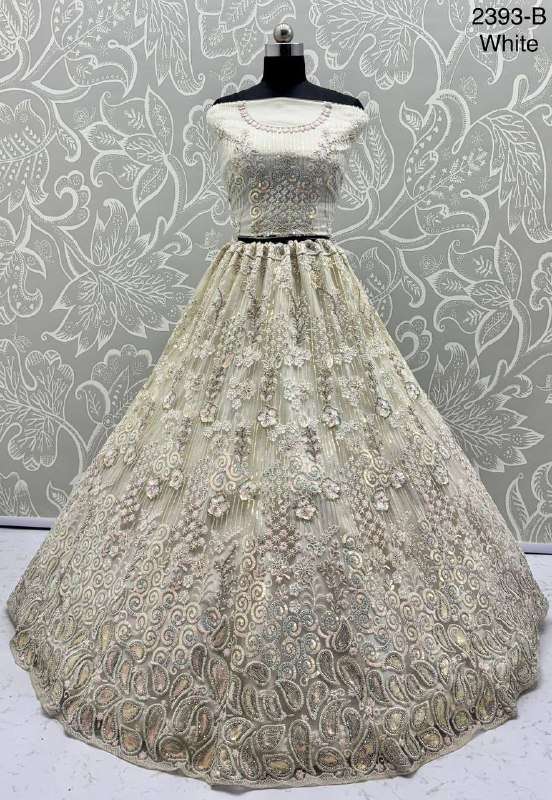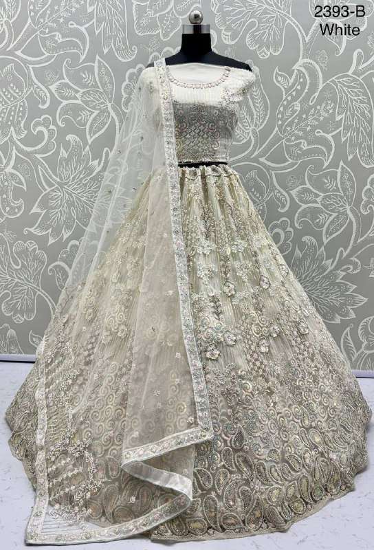 Title | 2893 RICH WEDDING WEAR ATTRACTIVE EMBROIDERY CREAM NET LEHENGA CHOLI AT DEALER SURAT BOUTIQUE |