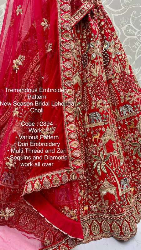 Title | 2894 TREMENDOUSE EMBROIDERY PATTERN NEW SEASON BRIDAL LEHENGA CHOLI DEALER GUJARAT |