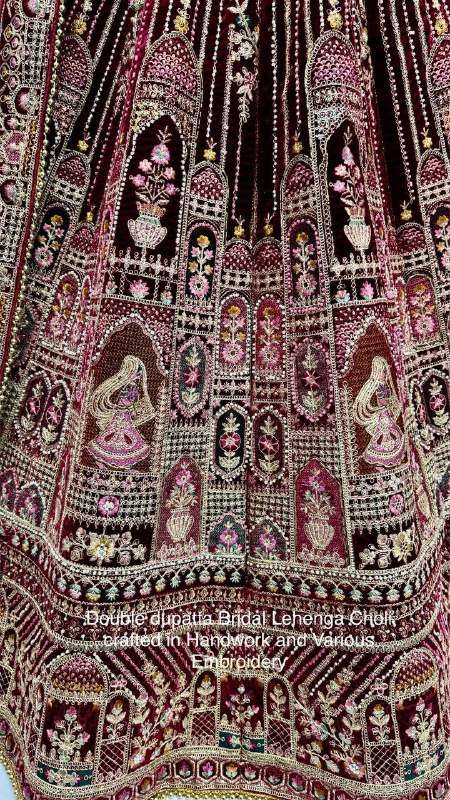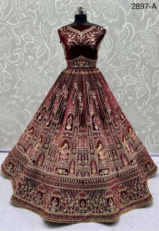 Title | 2897 GUJARATI WEDDING MAROON VELVET HEAVY WORK DOUBLE DUPATTA BRIDAL LEHENGA CHOLI BUY SURAT STORE |