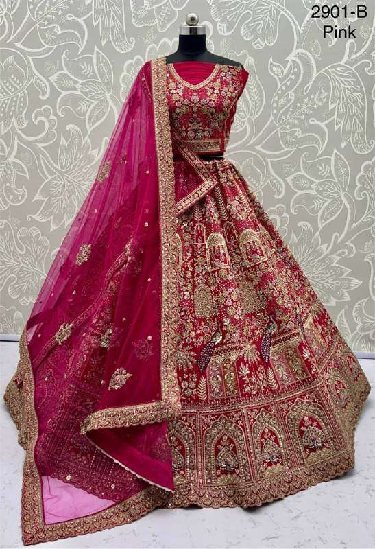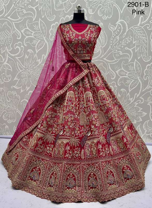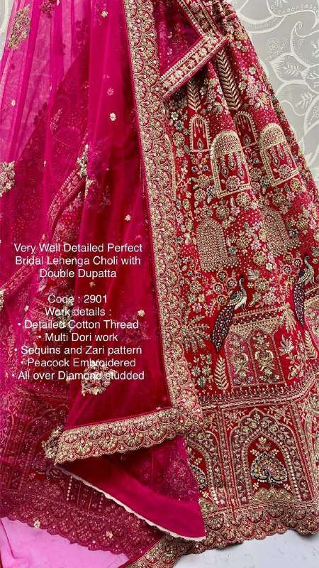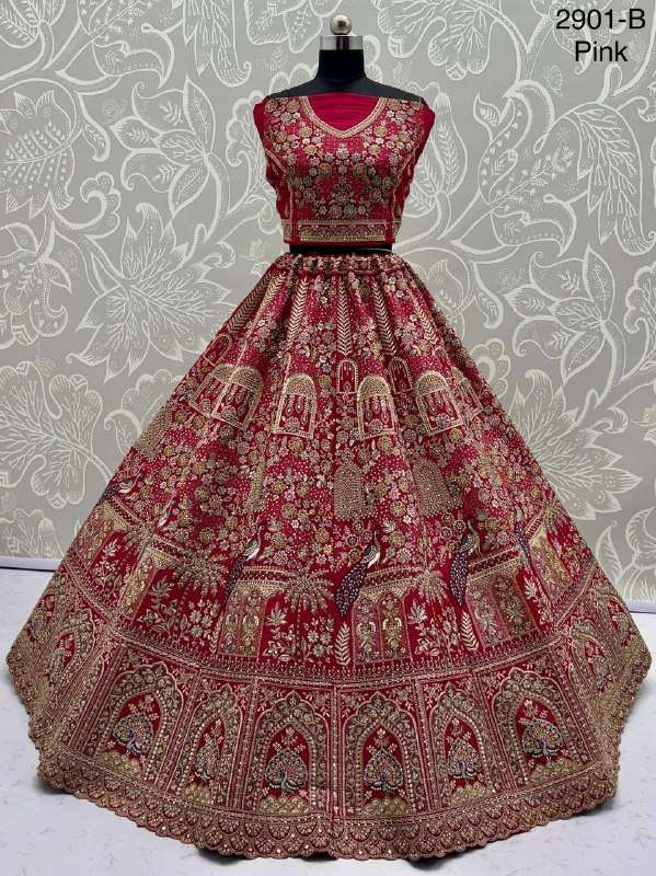 | Title | 2901 INDIAN WEDDING BRIDAL WEAR PEACOCK EMBROIDERY WORK PINK LEHENGA CHOLI SURAT EXPORT |