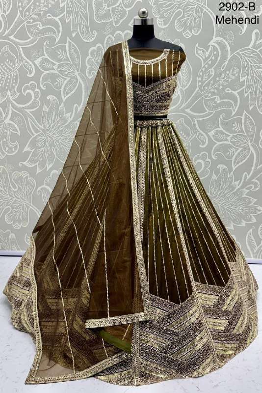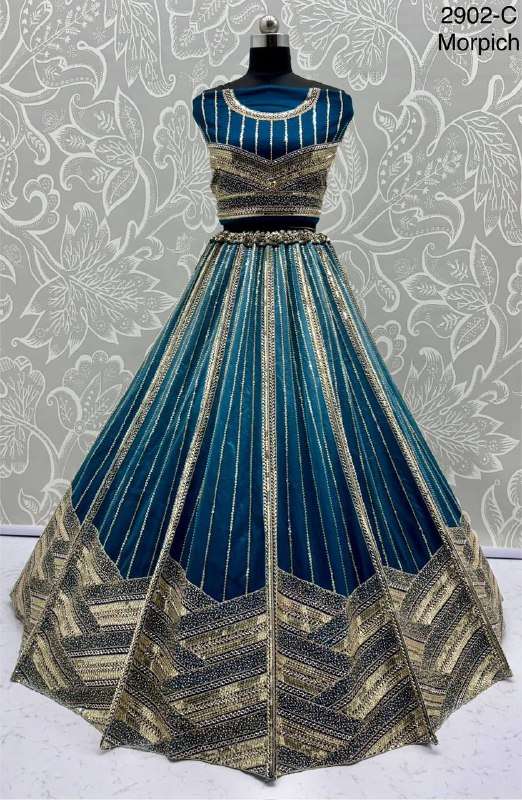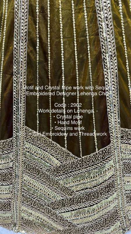 Title | 2902 WEDDING & PARTY WEAR STYLE MOTIF AND CRYSTAL PIPE WORK SEQUENCE DESIGNER LEHENGA CHOLI |
