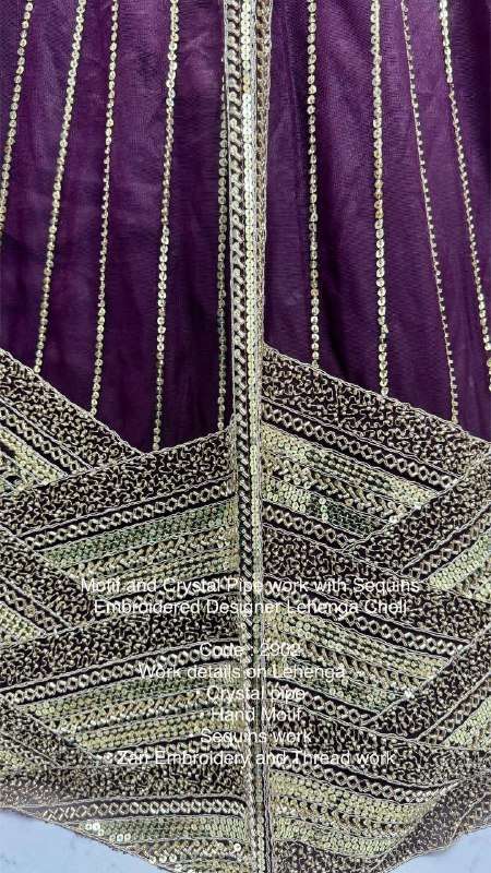 2902 WEDDING & PARTY WEAR STYLE MOTIF AND CRYSTAL PIPE WORK SEQUENCE DESIGNER LEHENGA CHOLI