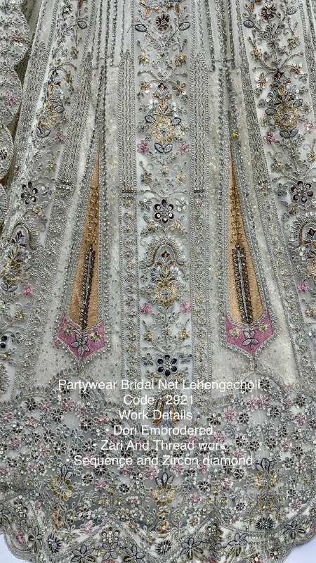 Code : 2921 Lehenga : Fabric - Bridal Net Work - • Dori Embrodered • Zari And Thread work • Sequence and Zircon diamond Stitching - Standard Cancan and Canvas attached free size upto 42
