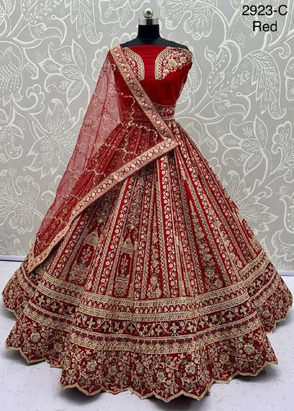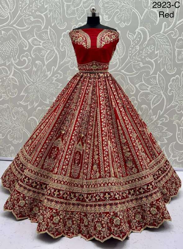 2923 WEDDING SEASON HEAVY WORK RED BRIDAL LEHENGA CHOLI WITH DOUBLE DUPATTA DEALER