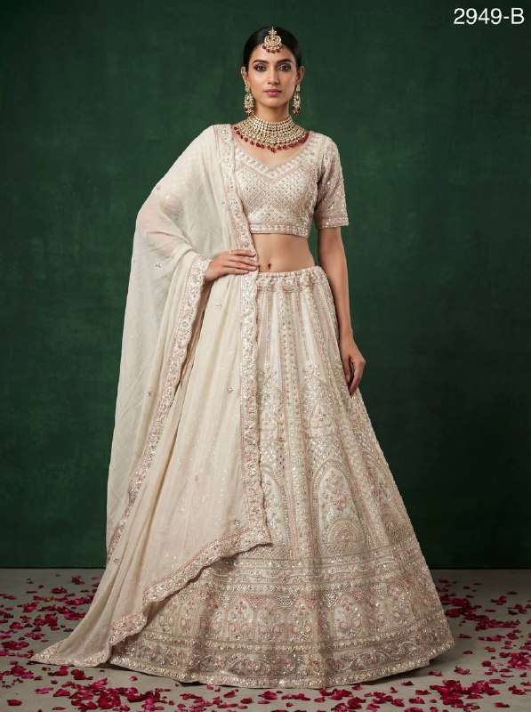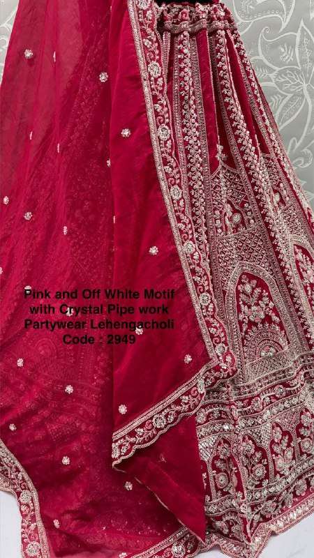 | Title | 2949 WHITE & PINK MOTIF CRYSTAL WORK PARTY WEAR LEHENGA CHOLI BUY |