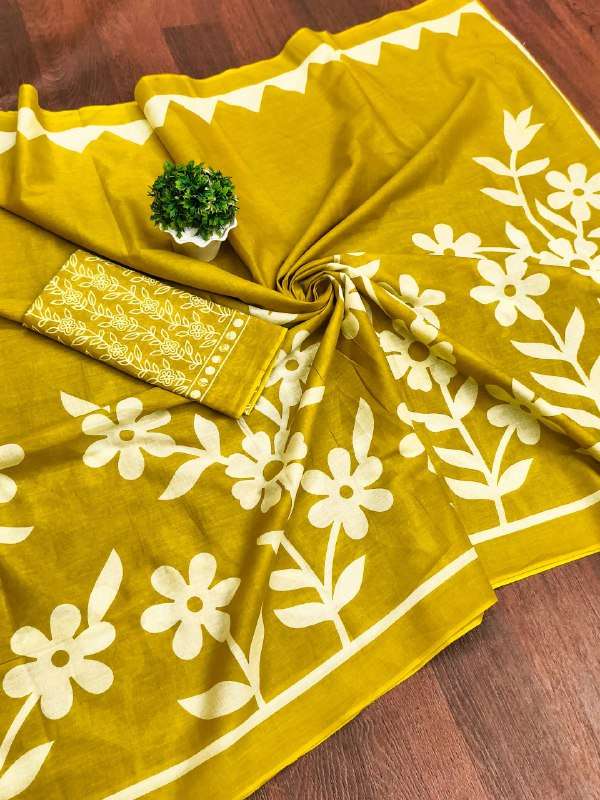 FABRICS : MULMUL COTTON SAREES : 5.50 MTR APPROX PURE MULMUL COTTON FLORAL BLOCK PRINTED SAREES BLOUSE : 0.80 MTR APPROX RUNING PURE COTTON SEM AS PHOTO BLOUSE PICE ➡️ 4 PCS. CATLOG ➡️ SINGLE PCS READY |