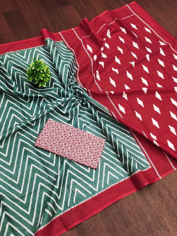 62-PALLAVI_TEAL FABRICS : MULMUL COTTON SAREES : 6.30 MTR PURE COTTON FANCY HAND BLOCK PRINT SAREES WITH BLOUSE PICE ➡️ 1 PCS. CATLOG