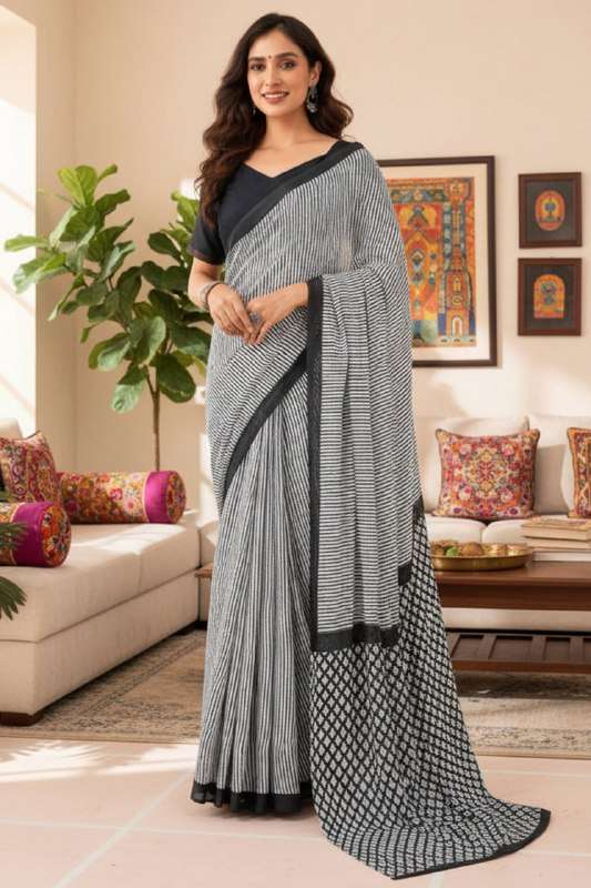 82-SUNDARI-GREY / MUSTARD FABRICS : *Soft Pure Cotton* SAREES : *6.30 MTR PURE COTTON FANCY BAGRU BLOCK PRINT SAREES WITH BLOUSE PICE* *Colour - 2*