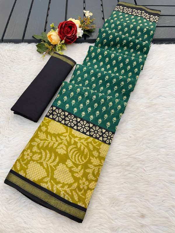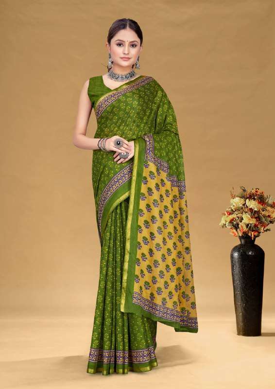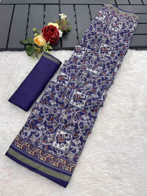 Buy Online 73 SUDHA ZARI BODAR BAGRU BLOCK PRINT MUSLIN COTTON SAREE WITH BLOUSE SURAT DEALER 11 Pcs of Full Catalogue at Wholesale Price. Looking for 73 SUDHA ZARI BODAR BAGRU BLOCK PRINT MUSLIN COTTON SAREE WITH BLOUSE SURAT DEALER Full Catalouge at Best Price? Buy Now 73 SUDHA ZARI BODAR BAGRU BLOCK PRINT MUSLIN COTTON SAREE WITH BLOUSE SURAT DEALER at Wholesale Rate of Rs 8250 with Total 11 Pcs from authroized dealer and supplier of SM Sarees Brand. Cost of Each piece is just only Rs 750 which is very low and affordable price to resale the product in your retail store Ethnic Export is Surat based Wholesale Supplier & Dealer of SM Sarees Brand. Click on Brand name to Know more about SM Sarees Brand's products.Call or Whatsapp on +91-9825759366 for booking or enquiry