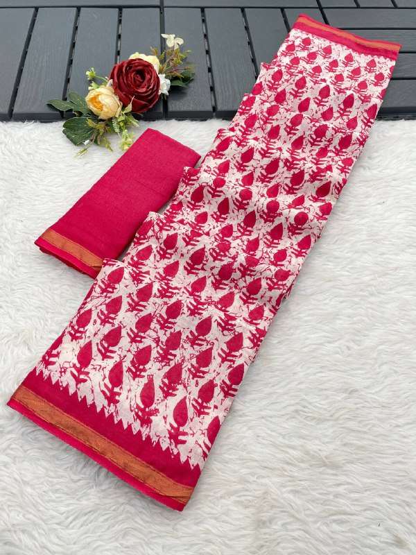 Title | 73 SUDHA ZARI BODAR BAGRU BLOCK PRINT MUSLIN COTTON SAREE WITH BLOUSE SURAT DEALER |