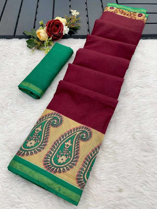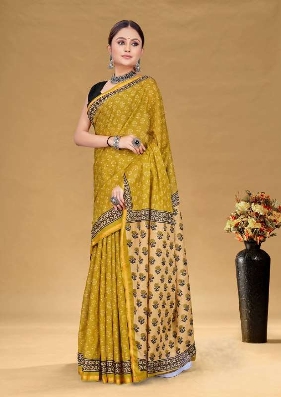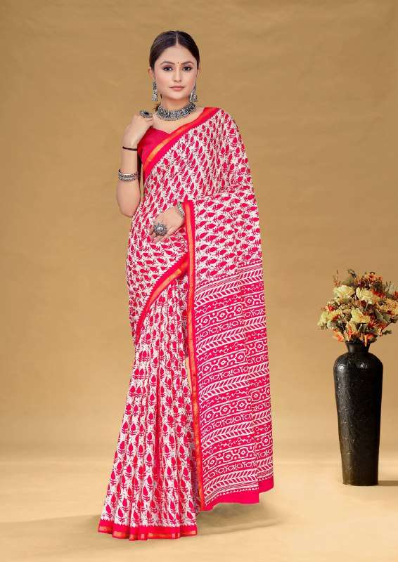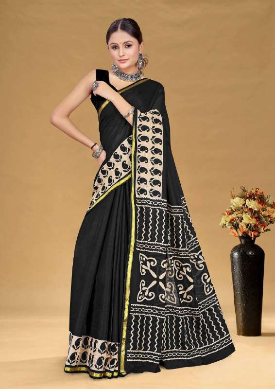 73 SUDHA ZARI BODAR BAGRU BLOCK PRINT MUSLIN COTTON SAREE WITH BLOUSE SURAT DEALER