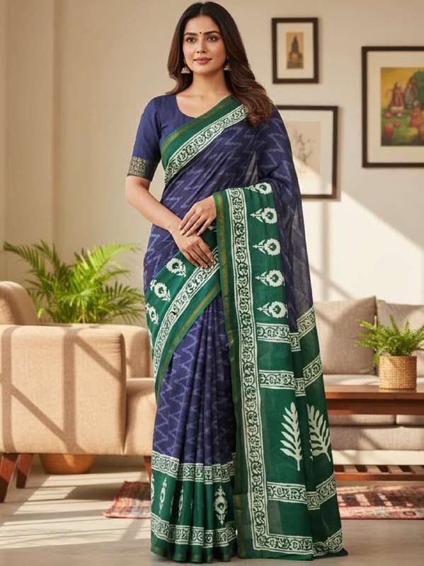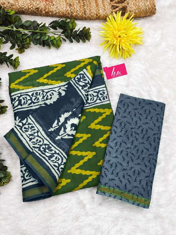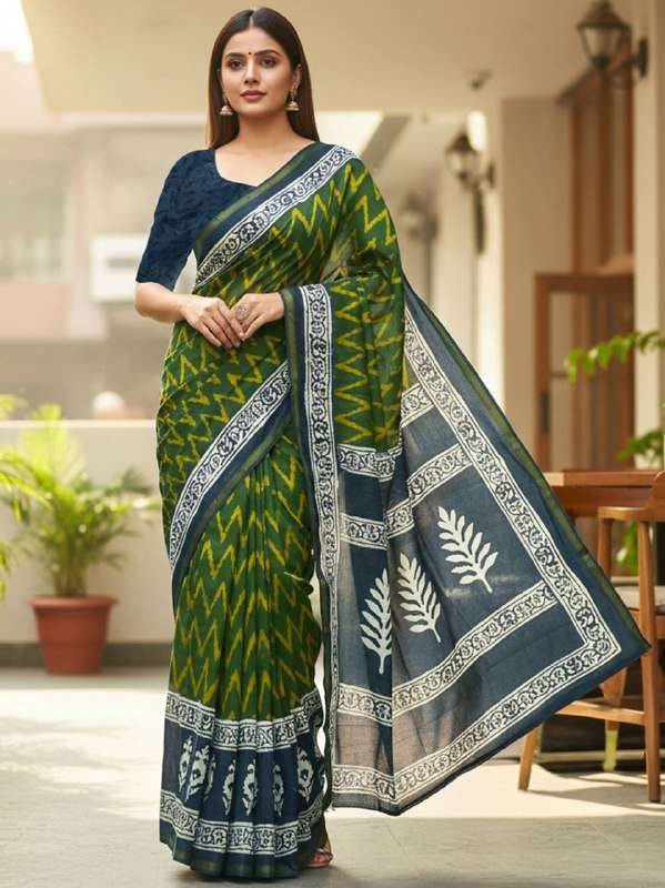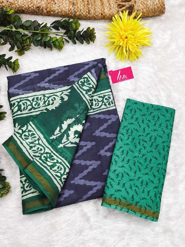 šBagru Block Print Modal Mulcotton sarees with blouse šAll saree with same blouse šFabric: Primum Quality Nechral Modal Mulcotton With Zari Border šSaree lenght:- 5.5 mtr printed with zari border šBlouse lenght:- 0.80 mtr Printed sam as photo with zari border