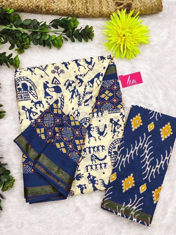 šBagru Block Print Modal Mulcotton sarees with blouse šAll saree with same blouse šFabric: Primum Quality Nechral Modal Mulcotton With Zari Border šSaree lenght:- 5.5 mtr printed with zari border šBlouse lenght:- 0.80 mtr Printed sam as photo with zari border SINGLE ALSO AVA |
