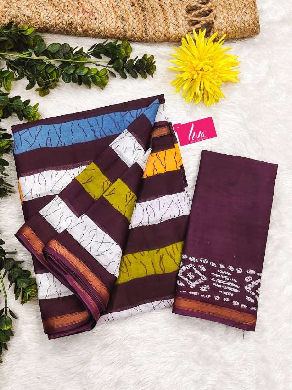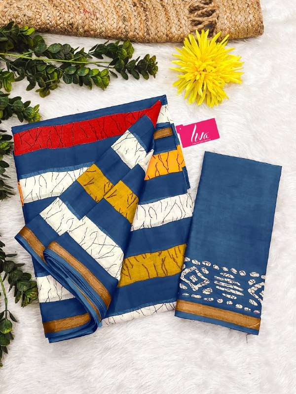 79 SUDHA ZARI BODAR DESIGN 26 & 27 🍁Bagru Block Print Modal Mulcotton sarees with blouse 🍁All saree with same blouse 🍁Fabric: Primum Quality Nechral Modal Mulcotton With Zari Border 🍁Saree lenght:- 5.5 mtr printed with zari border 🍁Blouse lenght:- 0.80 mtr Printed sam as photo with zari border