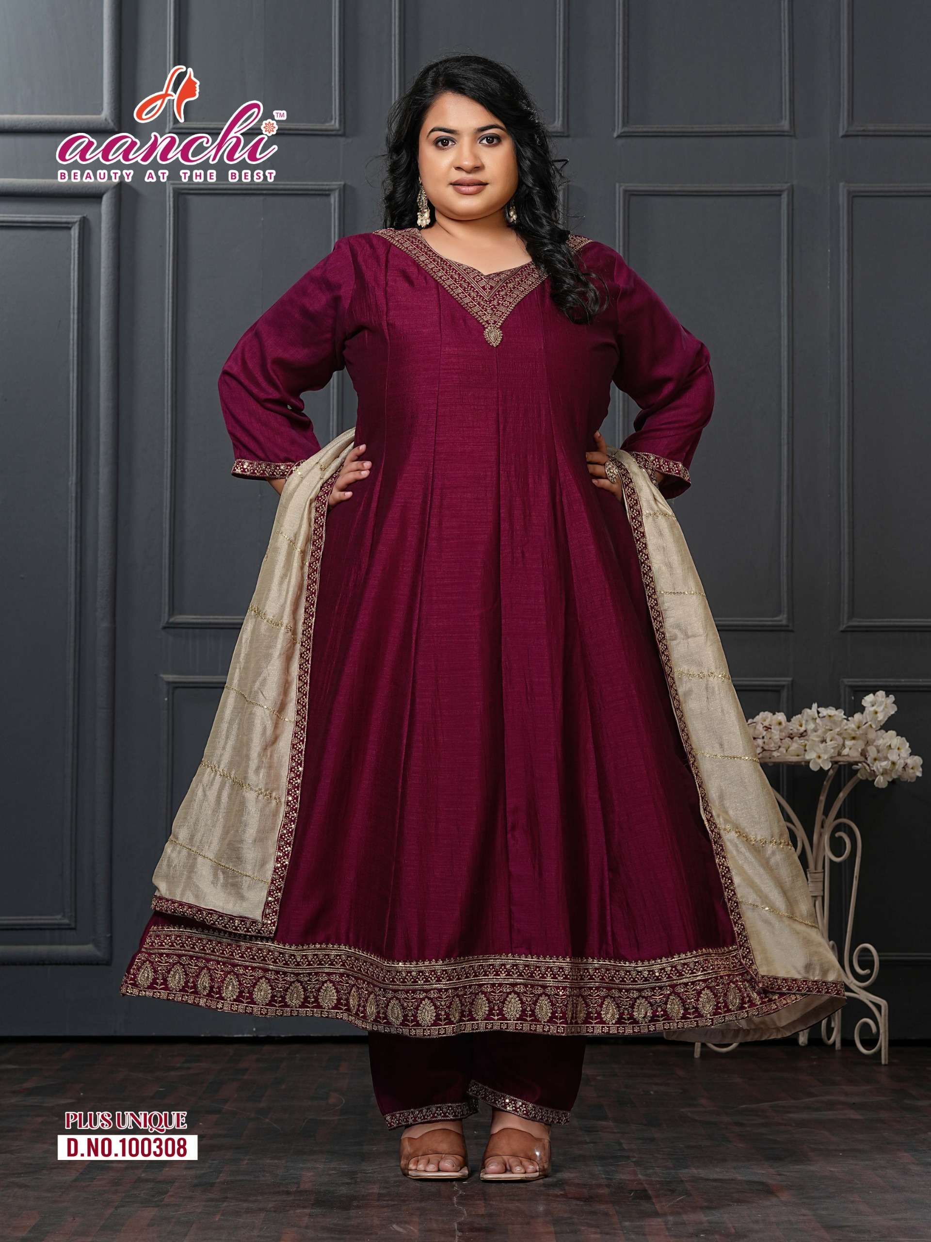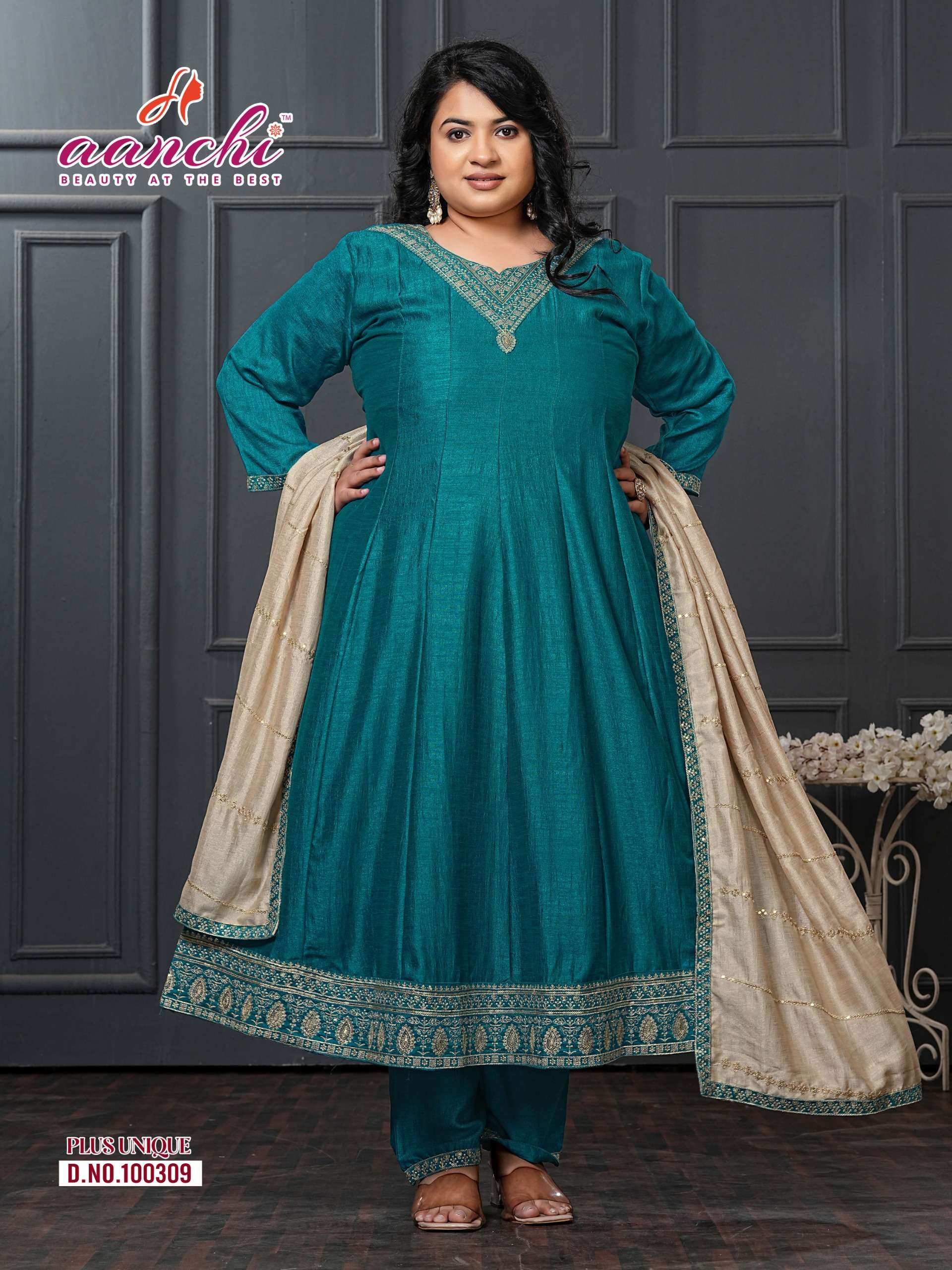 AANCHI PLUS UNIQUE READYMADE SUIT FANCY DUPATTA WORK BRAND INDIA WHOLESALE