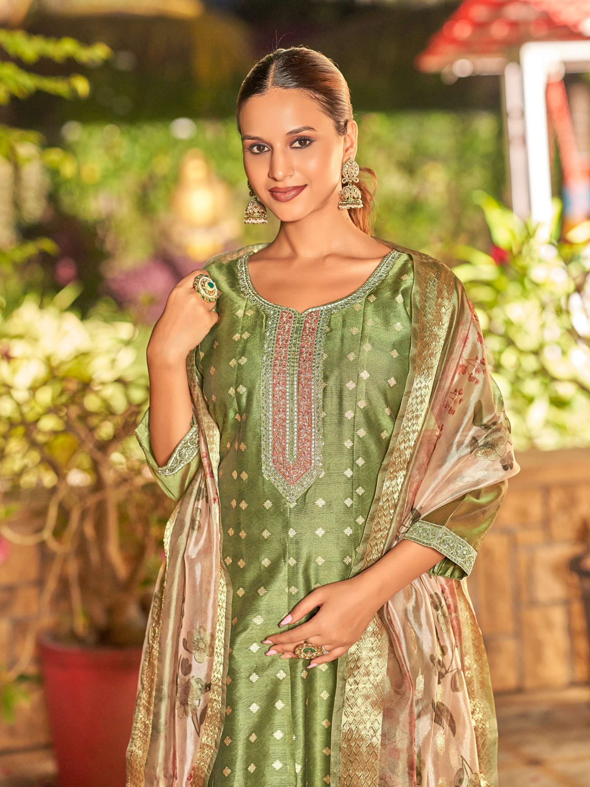 ✅TOP:SHIMMER JACQUARD BUTTI ✅BOTTOM:CHANDERI PANT ✅DUPATTA:➡️ FANCY DIGITAL DUPATTA