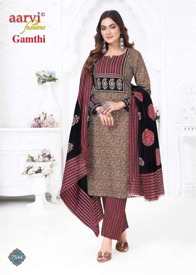 Buy Online AARVI GAMTHI VOL 11 READY TO WEAR COTTON WITH KANTHA HANDWORK SUIT SUPPLIER 8 Pcs of Full Catalogue at Wholesale Price. Looking for AARVI GAMTHI VOL 11 READY TO WEAR COTTON WITH KANTHA HANDWORK SUIT SUPPLIER Full Catalouge at Best Price? Buy Now AARVI GAMTHI VOL 11 READY TO WEAR COTTON WITH KANTHA HANDWORK SUIT SUPPLIER at Wholesale Rate of Rs 6040 with Total 8 Pcs from authroized dealer and supplier of AARVI FASHION Brand. Cost of Each piece is just only Rs 755 which is very low and affordable price to resale the product in your retail store Ethnic Export is Surat based Wholesale Supplier & Dealer of AARVI FASHION Brand. Click on Brand name to Know more about AARVI FASHION Brand's products.Call or Whatsapp on +91-9825759366 for booking or enquiry