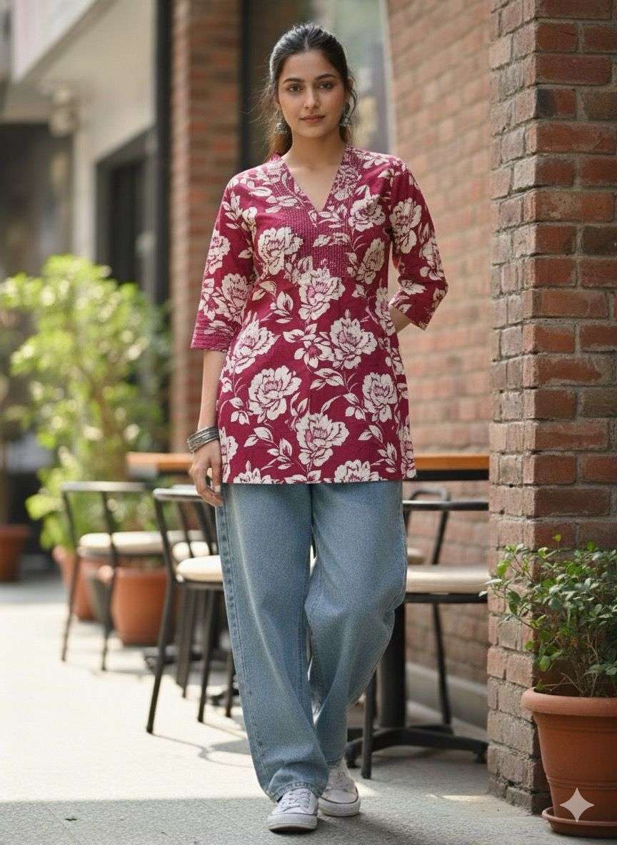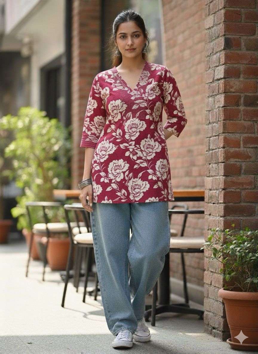AD WESTERN FASHION RAYON PRINTED SHORT TUNIC TOP COLLECTION LOW RATE