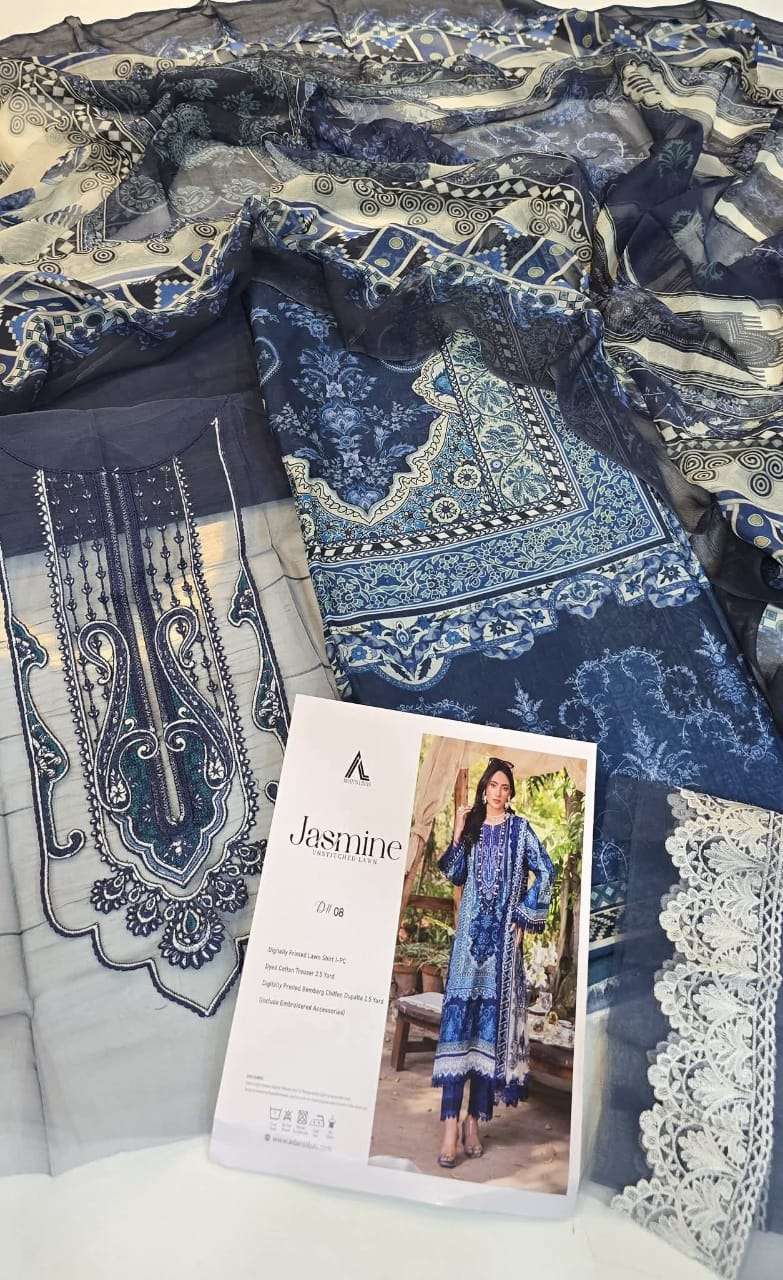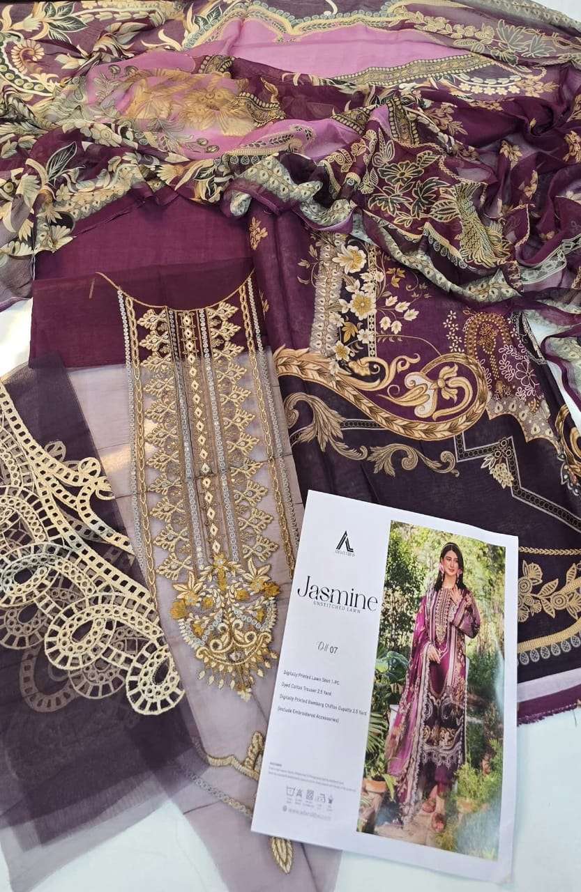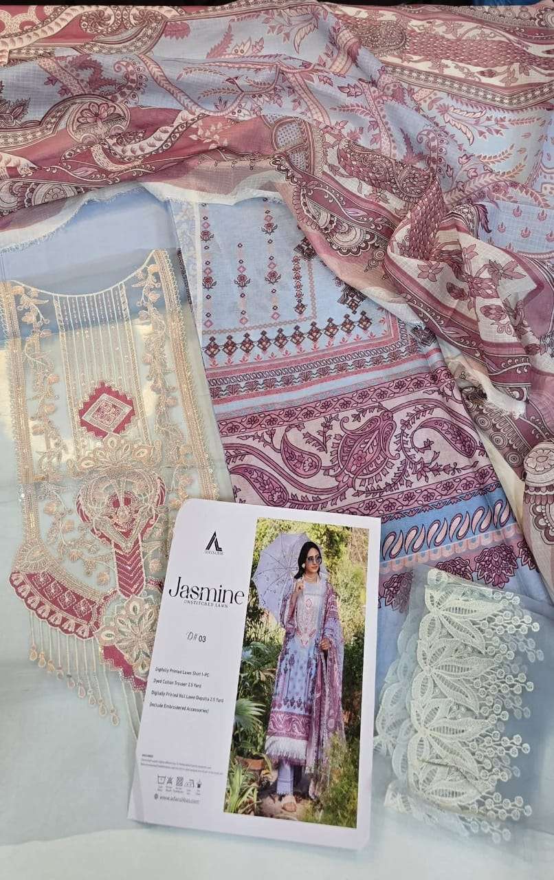 | Title | ADAS LIBAS JASMINE UNSTITCHED LAWN TOP BRAND DYED COTTON DIGITAL PRINT SUIT EXPORT |