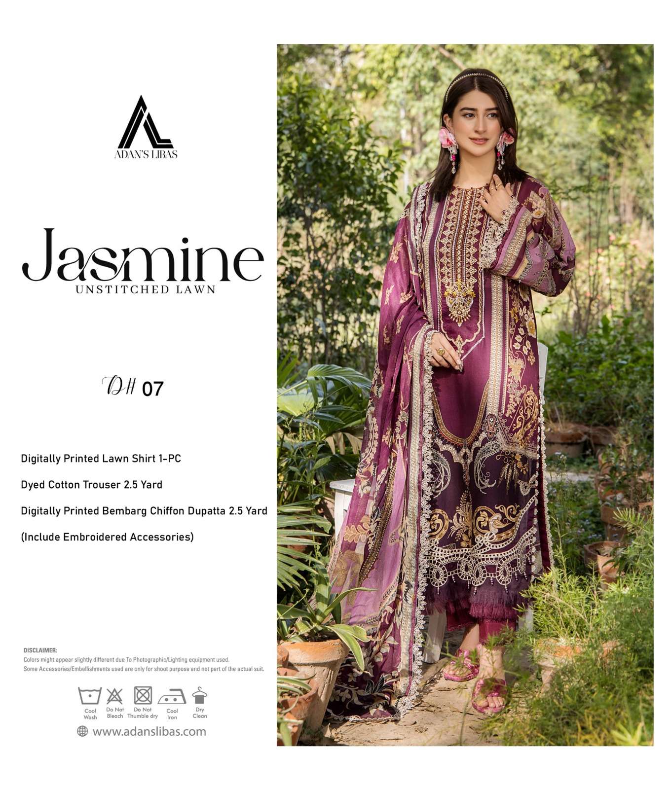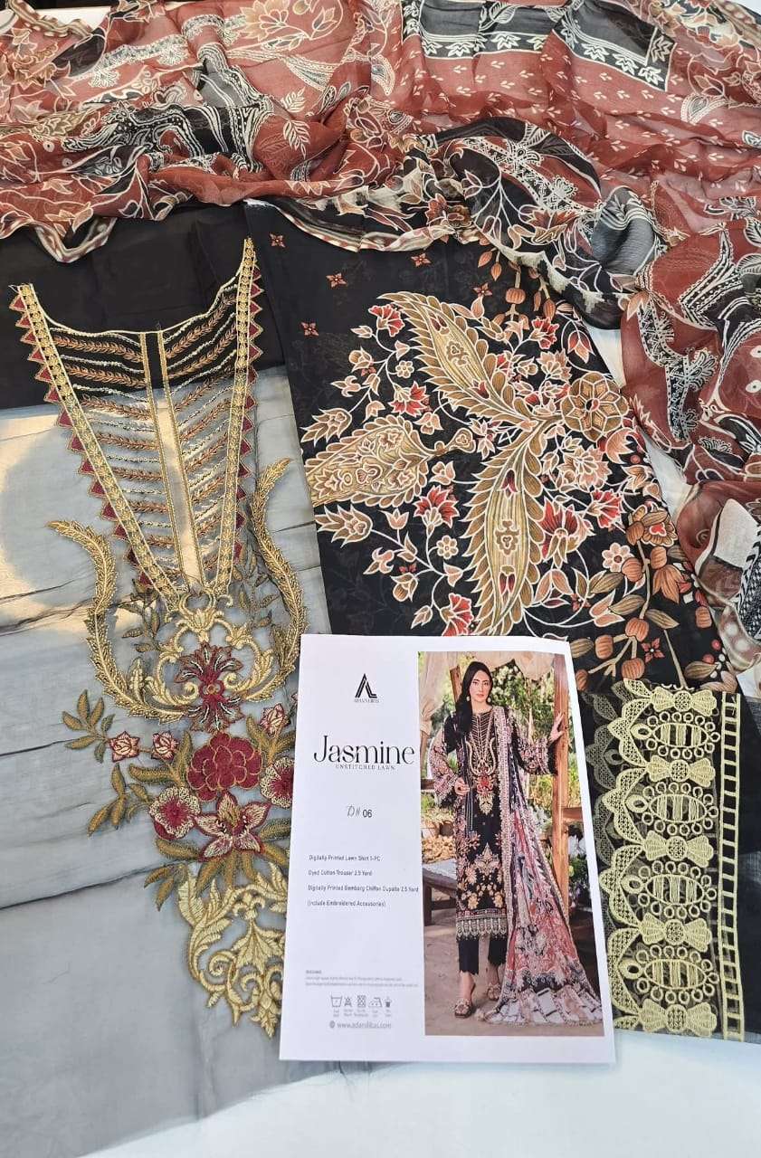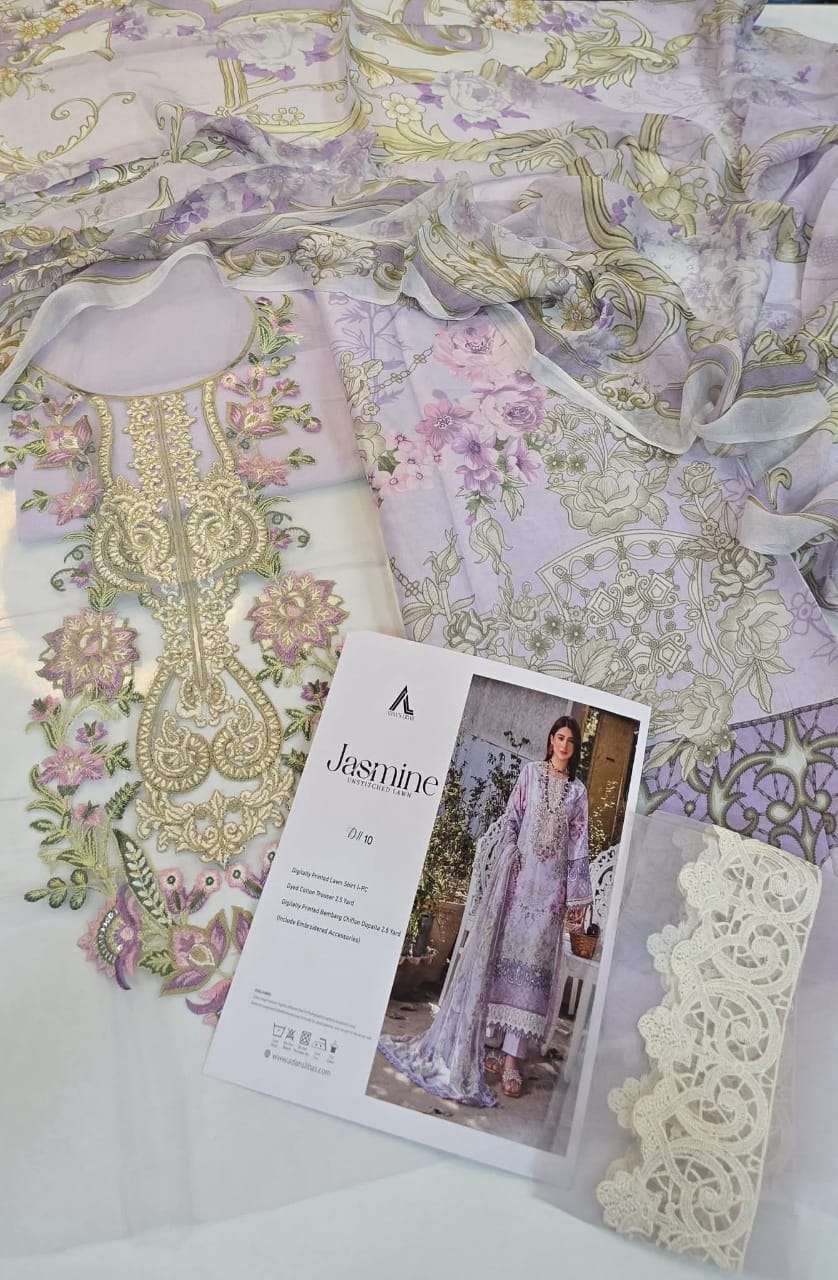 | Title | ADAS LIBAS JASMINE UNSTITCHED LAWN TOP BRAND DYED COTTON DIGITAL PRINT SUIT EXPORT |