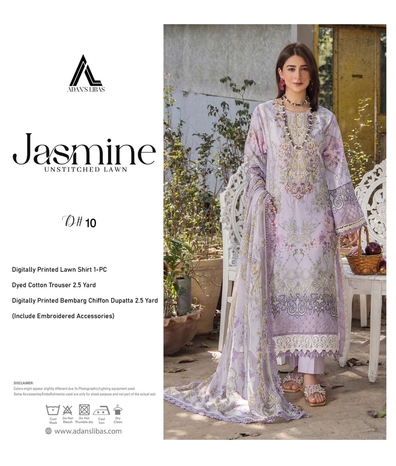 JASMINE UNSTITCHED LAWN BY ADAN'S LIBAS • Digitally Printed Lawn Shirts Total Designs 10 FULL SET ONLY |