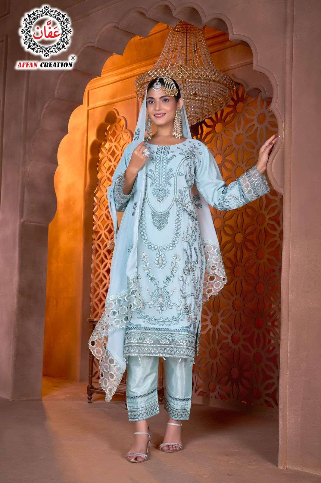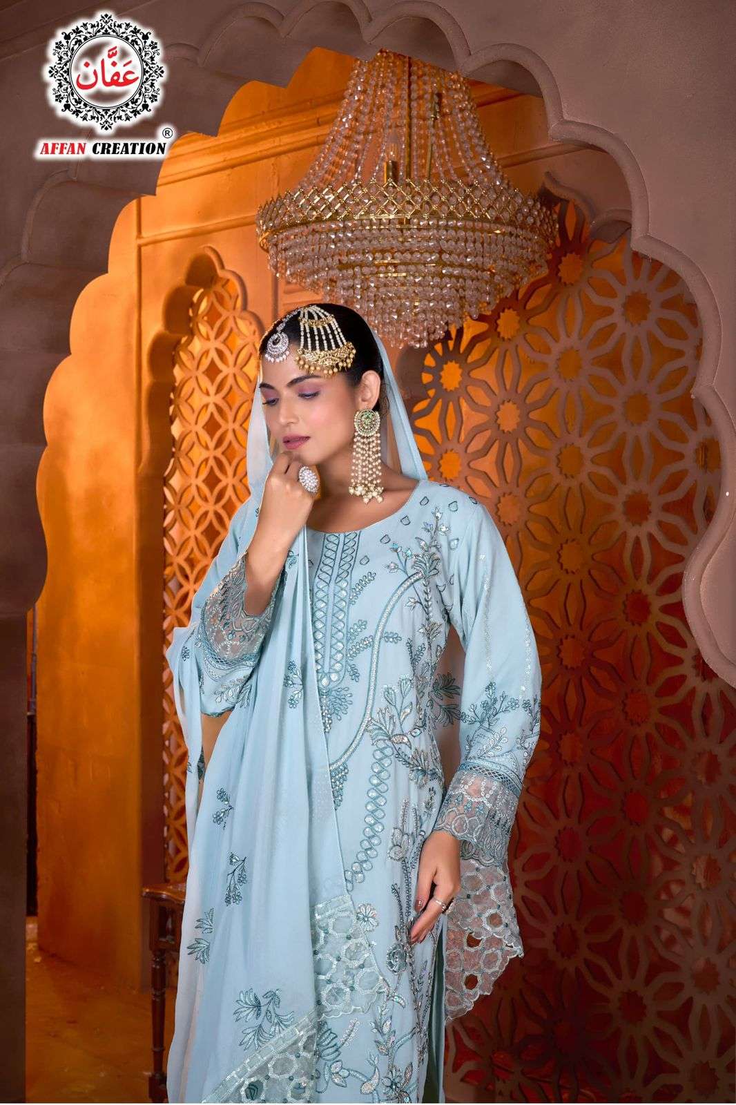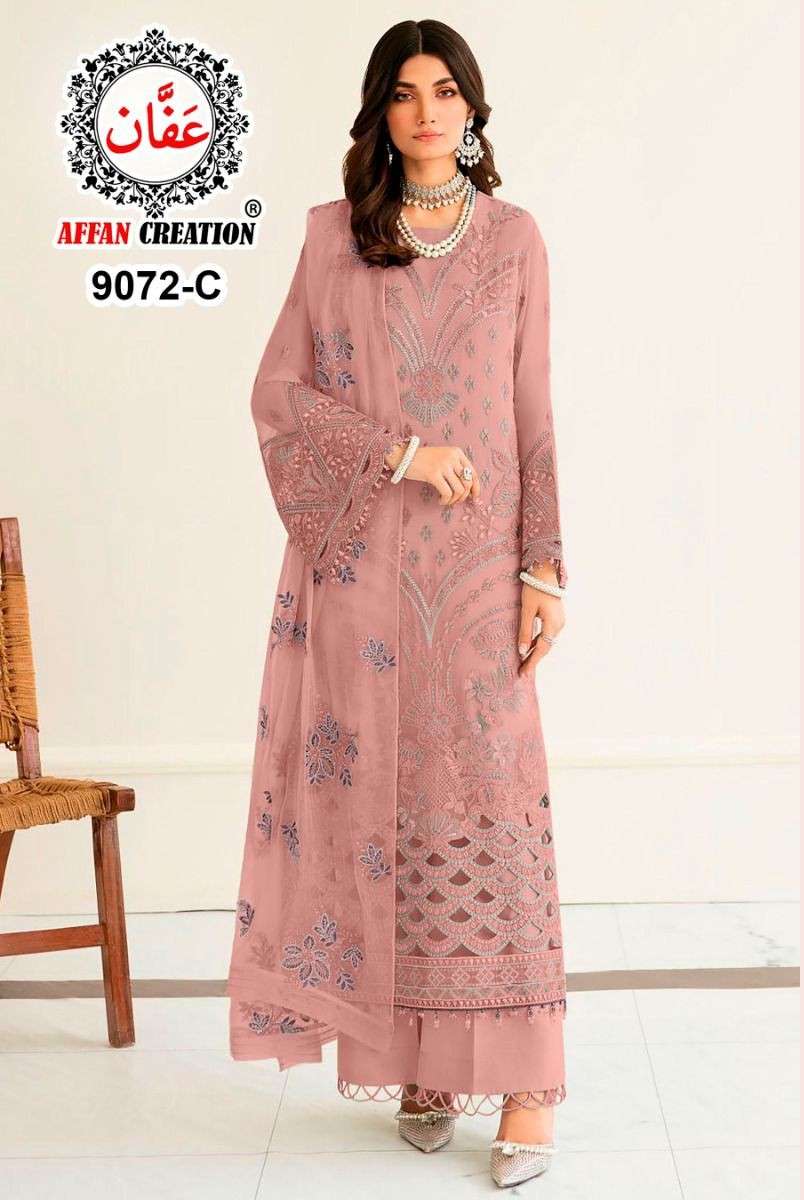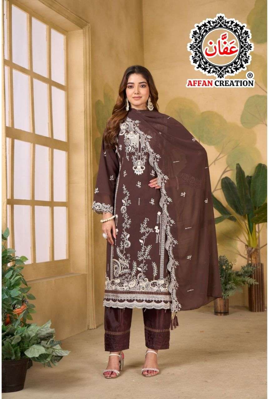 AFFAN CREATION 9064 GEORGETTE FABRIC HEAVY WORK SEMI STITCH PAKISTANI DRESS CATALOG