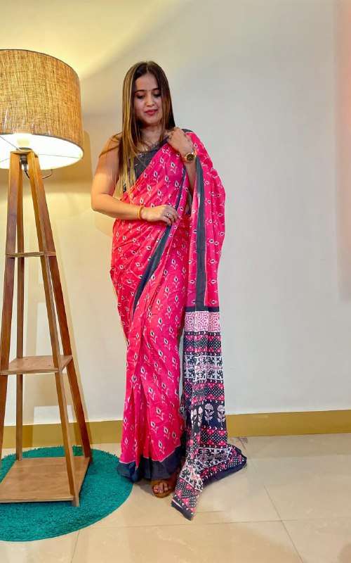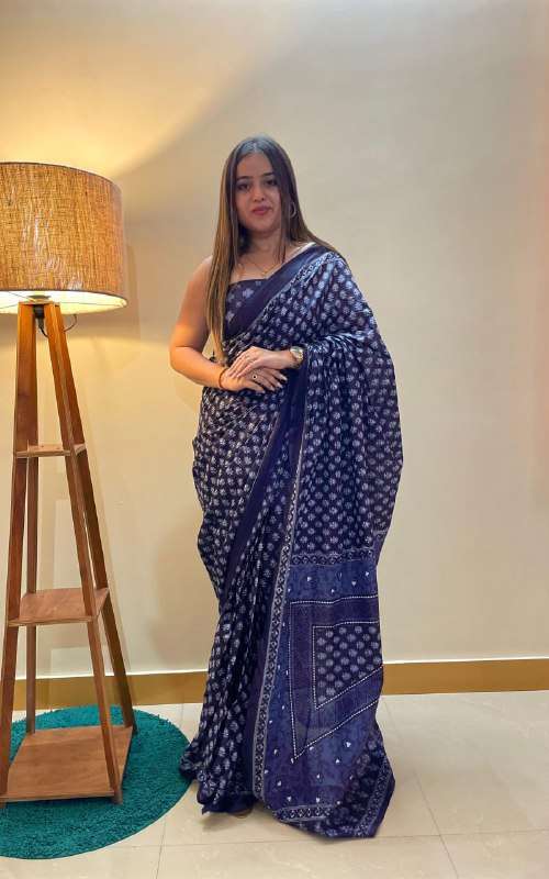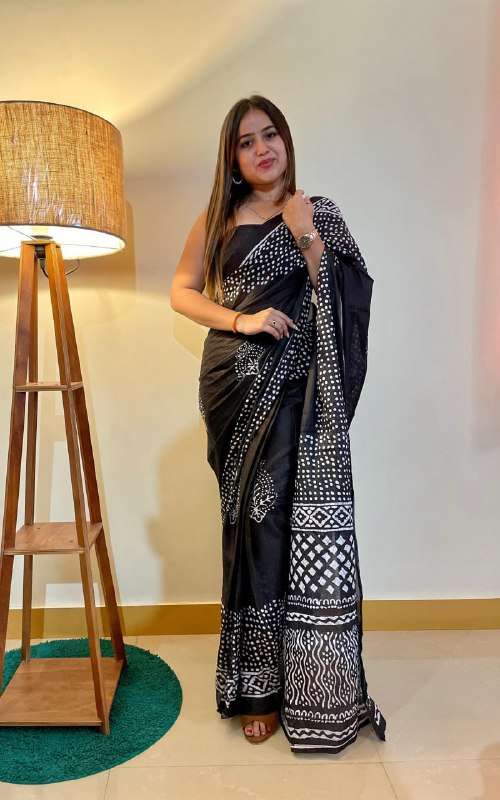 Title | AJRAKH COTTON PURE COTTON JAIPUR BLOCK PRINT SAREES WITH UNSTITCHED BLOUSE PICE DEALER SURAT |