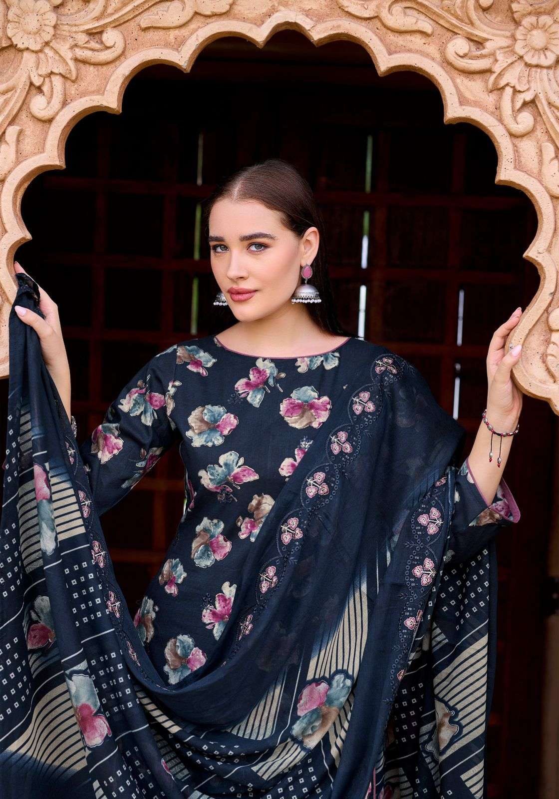 ALOK SUIT RANG JA CAMBRIC COTTON PRINT FANCY WORK LADIES UNSTITCH SUIT INDIA DEALER