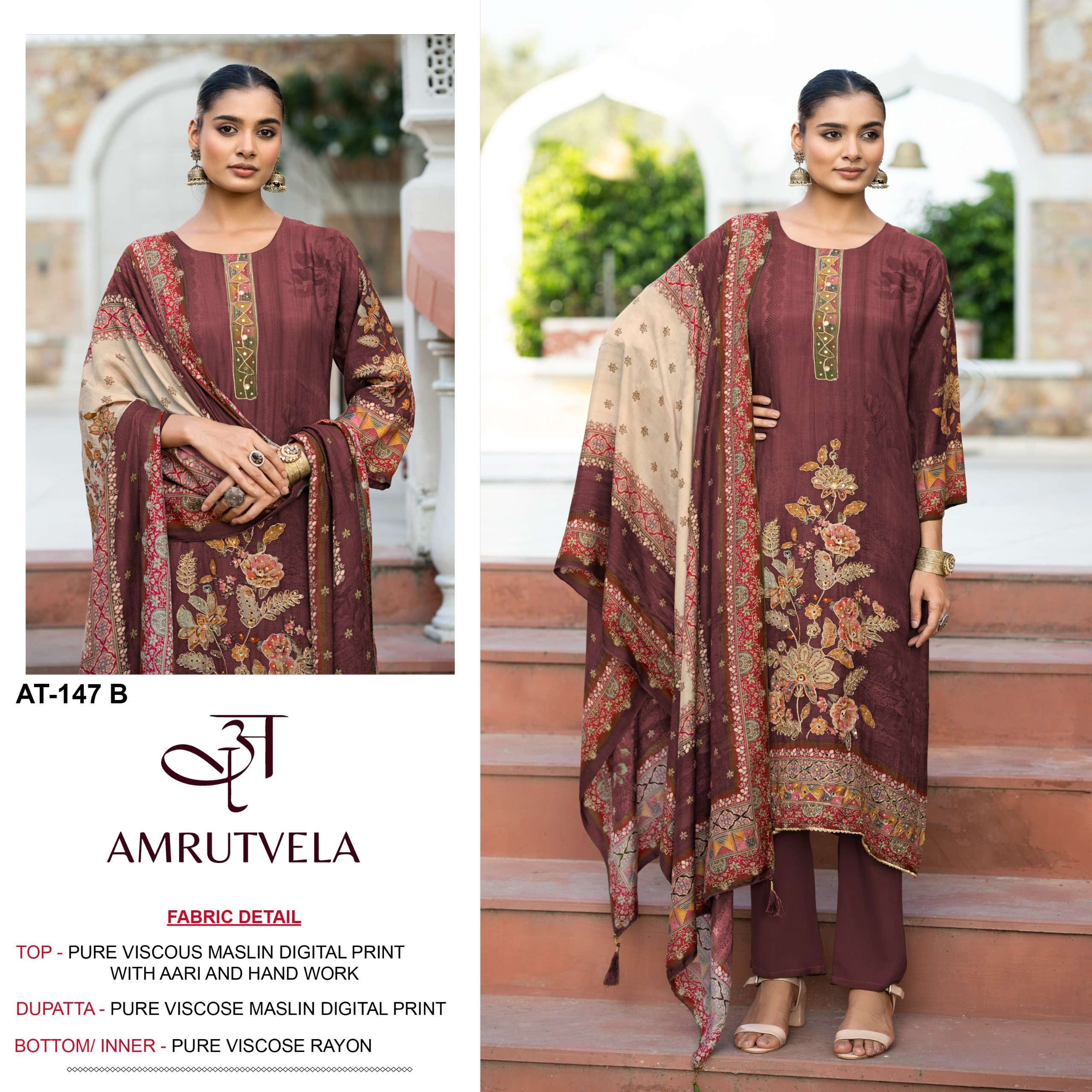 AMRUTVELA AT 147 BRANDED QUALITY MUSLIN DESIGNER WOMEN SUIT TO FESTIVAL STYLE EXPORT
