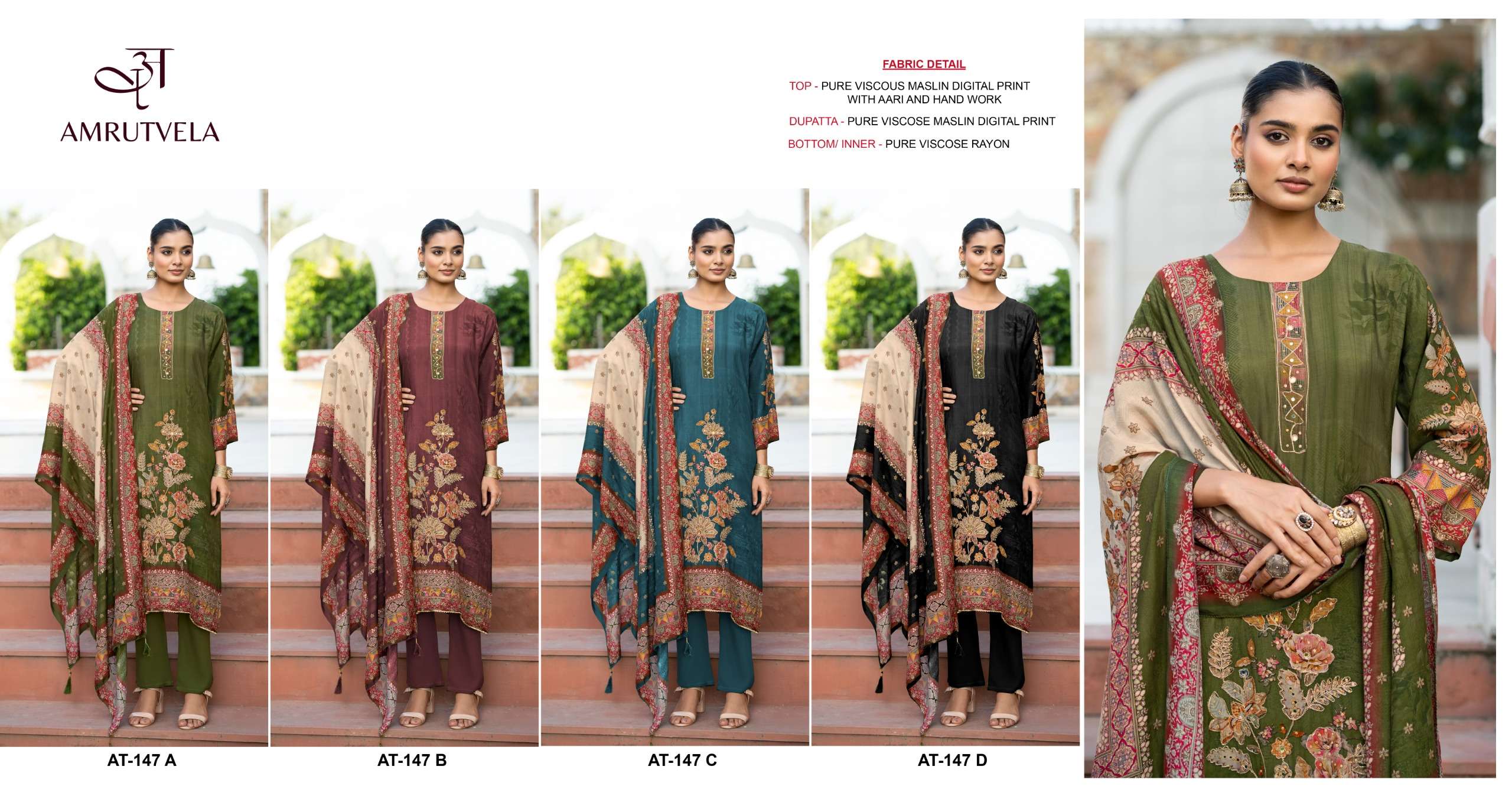 Buy Online AMRUTVELA AT 147 BRANDED QUALITY MUSLIN DESIGNER WOMEN SUIT TO FESTIVAL STYLE EXPORT 4 Pcs of Full Catalogue at Wholesale Price. Looking for AMRUTVELA AT 147 BRANDED QUALITY MUSLIN DESIGNER WOMEN SUIT TO FESTIVAL STYLE EXPORT Full Catalouge at Best Price? Buy Now AMRUTVELA AT 147 BRANDED QUALITY MUSLIN DESIGNER WOMEN SUIT TO FESTIVAL STYLE EXPORT at Wholesale Rate of Rs 4800 with Total 4 Pcs from authroized dealer and supplier of AMRUTVELA Brand. Cost of Each piece is just only Rs 1200 which is very low and affordable price to resale the product in your retail store Ethnic Export is Surat based Wholesale Supplier & Dealer of AMRUTVELA Brand. Click on Brand name to Know more about AMRUTVELA Brand's products.Call or Whatsapp on +91-9825759366 for booking or enquiry