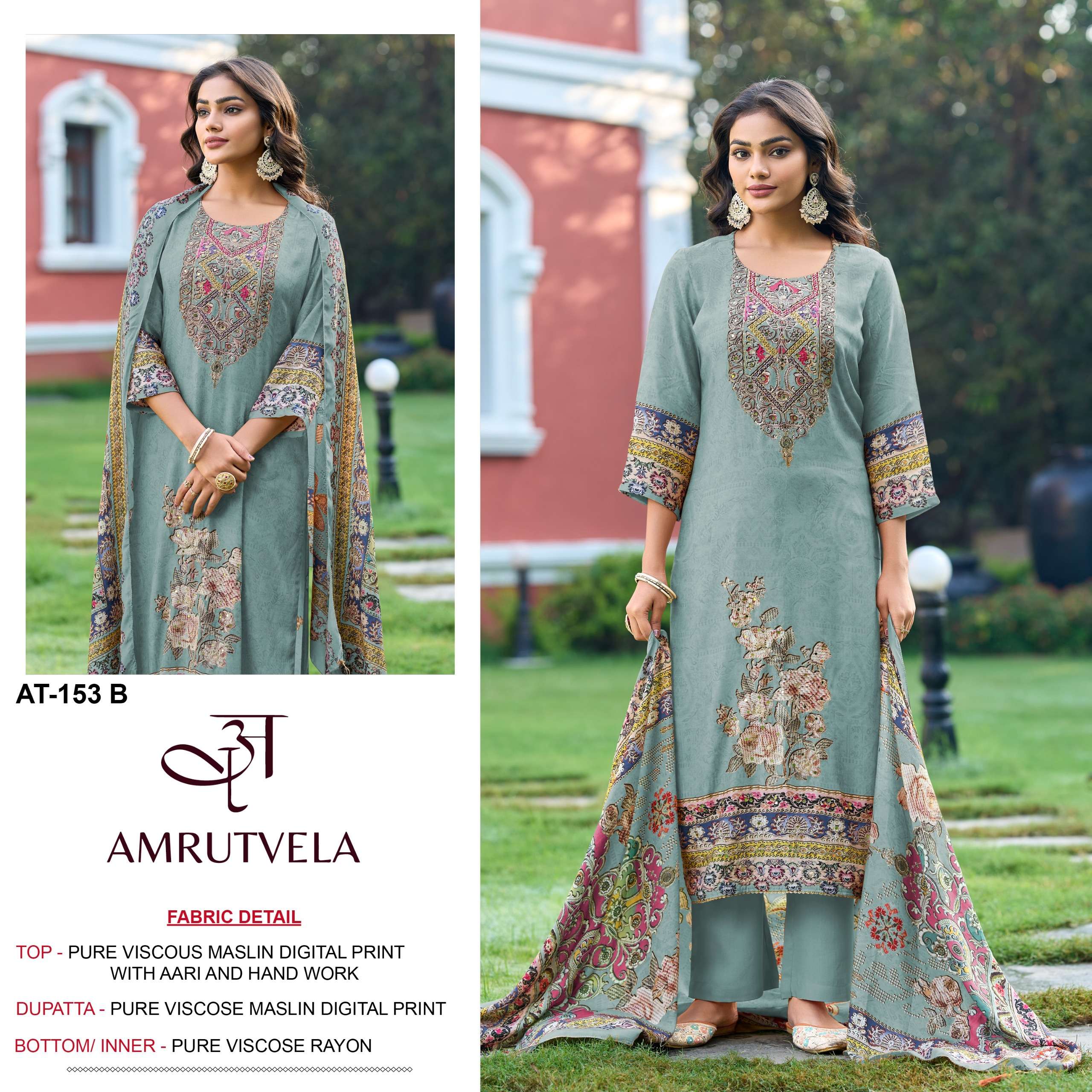 | Title | AMRUTVELA AT 153 SURAT BRAND MUSLIN DESIGN SALWAR SUIT FOR FESTIVAL SUPPLIER |
