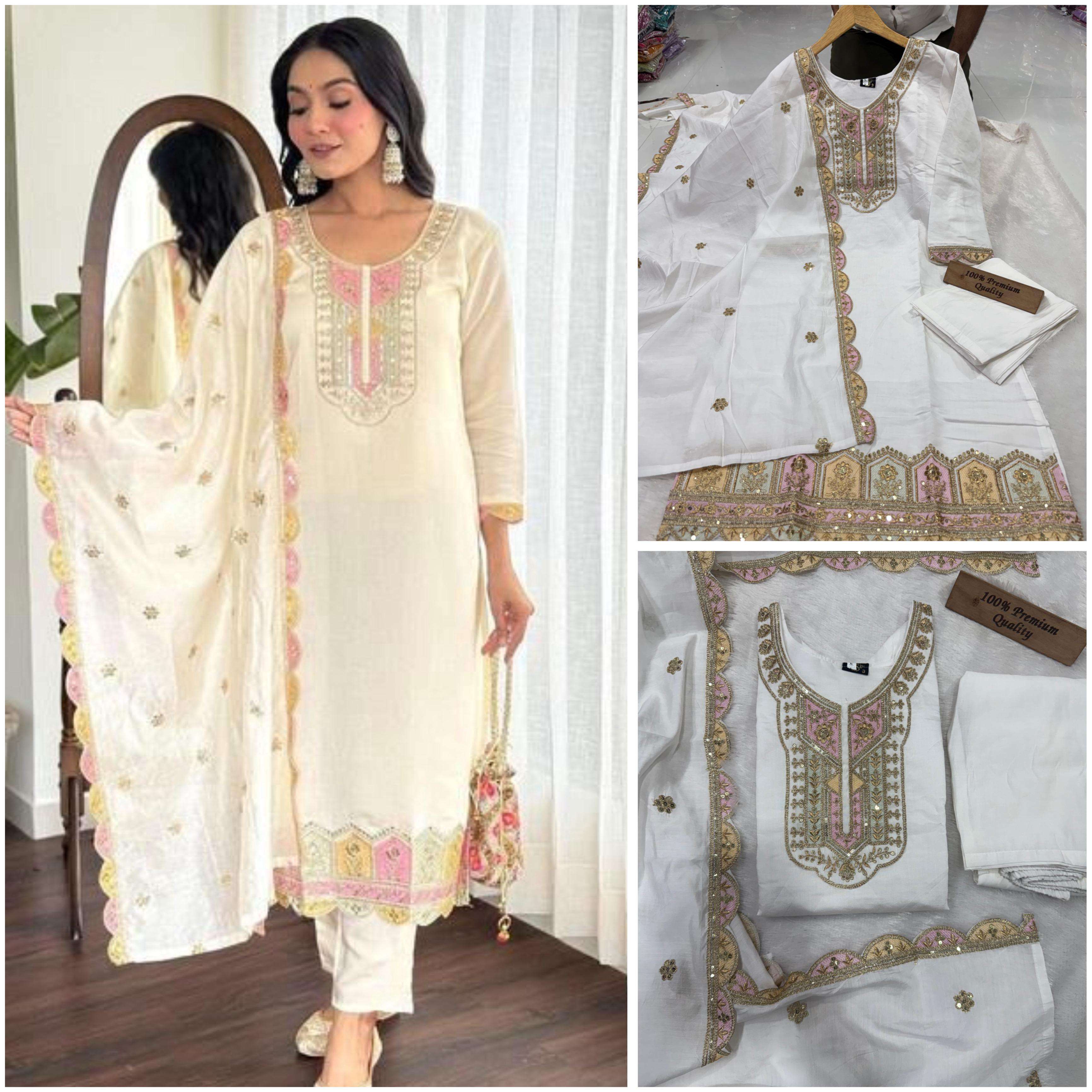 *Fabric Details : * *Fabric *: Rayon cotton *Palazo * : Stitched Pure Rayon Cotton Fabric with Embroidery Dupatta - PURE Chiffon with heavy lace Size:- L. (40) Design - 4 Single also avaialble |