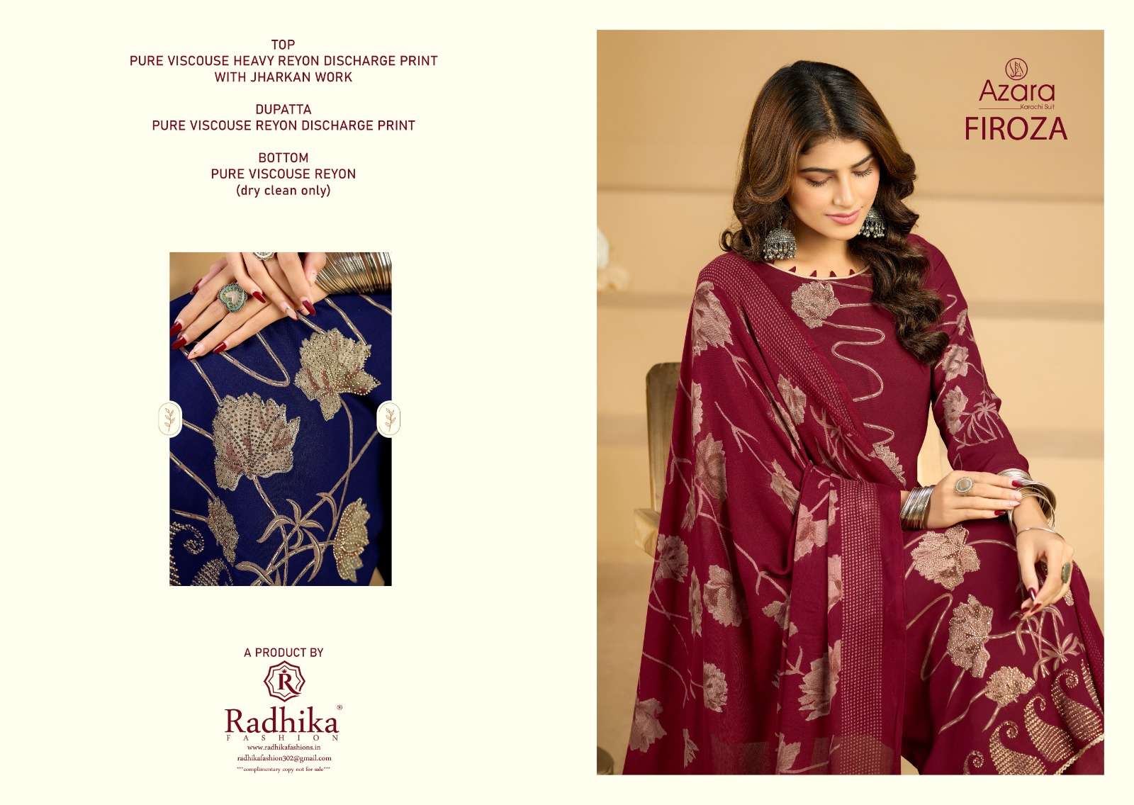 Buy Online AZARA FIROZA UNSTITCH REYON DISCHARGE PRINT SALWAR KAMEEZ DAILY CLOTH SURAT 4 Pcs of Full Catalogue at Wholesale Price. Looking for AZARA FIROZA UNSTITCH REYON DISCHARGE PRINT SALWAR KAMEEZ DAILY CLOTH SURAT Full Catalouge at Best Price? Buy Now AZARA FIROZA UNSTITCH REYON DISCHARGE PRINT SALWAR KAMEEZ DAILY CLOTH SURAT at Wholesale Rate of Rs 2680 with Total 4 Pcs from authroized dealer and supplier of Radhika Fashion Brand. Cost of Each piece is just only Rs 670 which is very low and affordable price to resale the product in your retail store Ethnic Export is Surat based Wholesale Supplier & Dealer of Radhika Fashion Brand. Click on Brand name to Know more about Radhika Fashion Brand's products.Call or Whatsapp on +91-9825759366 for booking or enquiry