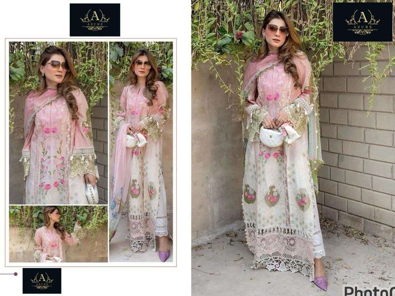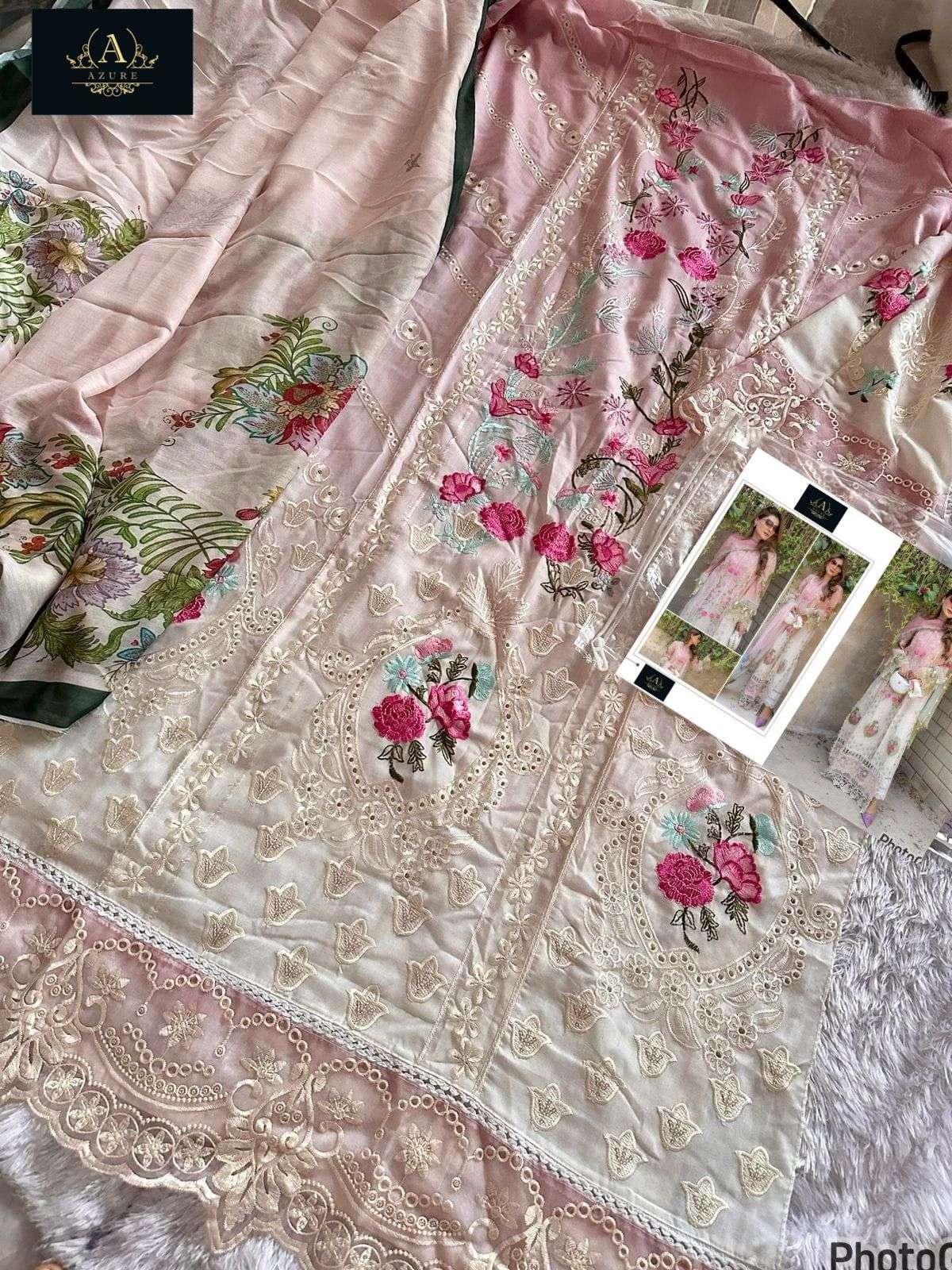 AZURE ORANGE COTTON WHITE MULTI DESIGN MATERIAL PAKISTANI SUIT