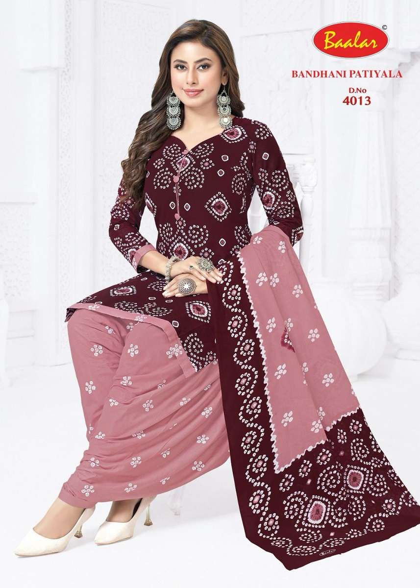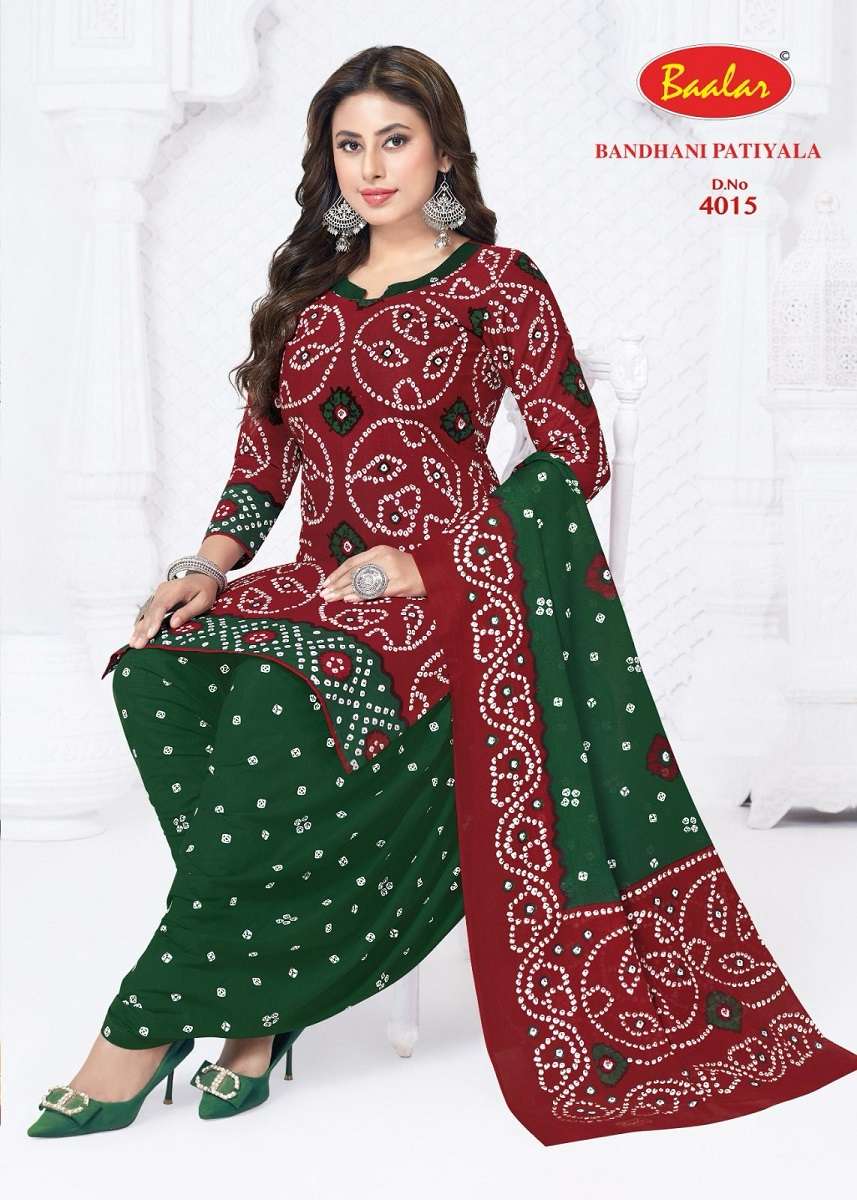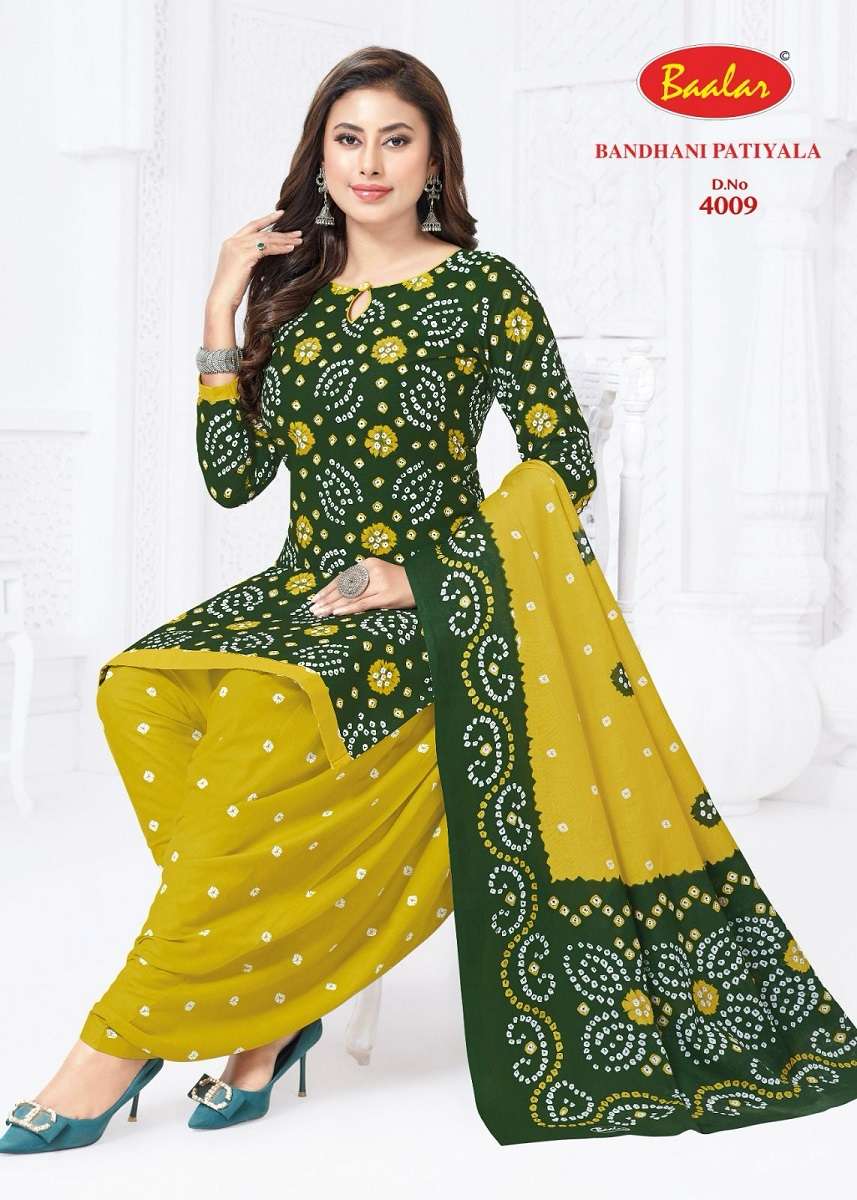 Buy Online BAALA BANDHANI VOL 4 HEAVY COTTON PRINTED MATERIAL PATIYALA SUIT RESELLER 12 Pcs of Full Catalogue at Wholesale Price. Looking for BAALA BANDHANI VOL 4 HEAVY COTTON PRINTED MATERIAL PATIYALA SUIT RESELLER Full Catalouge at Best Price? Buy Now BAALA BANDHANI VOL 4 HEAVY COTTON PRINTED MATERIAL PATIYALA SUIT RESELLER at Wholesale Rate of Rs 5520 with Total 12 Pcs from authroized dealer and supplier of BAALAR Brand. Cost of Each piece is just only Rs 460 which is very low and affordable price to resale the product in your retail store Ethnic Export is Surat based Wholesale Supplier & Dealer of BAALAR Brand. Click on Brand name to Know more about BAALAR Brand's products.Call or Whatsapp on +91-9825759366 for booking or enquiry