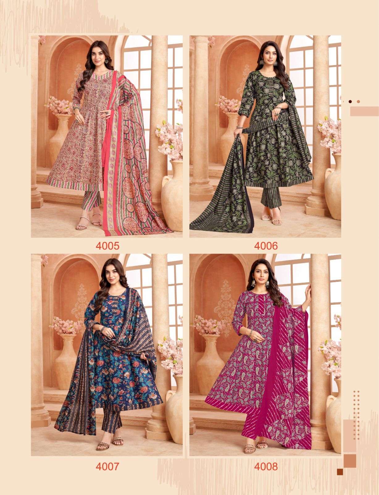 Buy Online BALAJI ANARKALI VOL 4 SUMMER COTTON READYMADE ANARKALI KURTI SUIT BUY SURAT 8 Pcs of Full Catalogue at Wholesale Price. Looking for BALAJI ANARKALI VOL 4 SUMMER COTTON READYMADE ANARKALI KURTI SUIT BUY SURAT Full Catalouge at Best Price? Buy Now BALAJI ANARKALI VOL 4 SUMMER COTTON READYMADE ANARKALI KURTI SUIT BUY SURAT at Wholesale Rate of Rs 4440 with Total 8 Pcs from authroized dealer and supplier of Balaji Cotton Brand. Cost of Each piece is just only Rs 555 which is very low and affordable price to resale the product in your retail store Ethnic Export is Surat based Wholesale Supplier & Dealer of Balaji Cotton Brand. Click on Brand name to Know more about Balaji Cotton Brand's products.Call or Whatsapp on +91-9825759366 for booking or enquiry