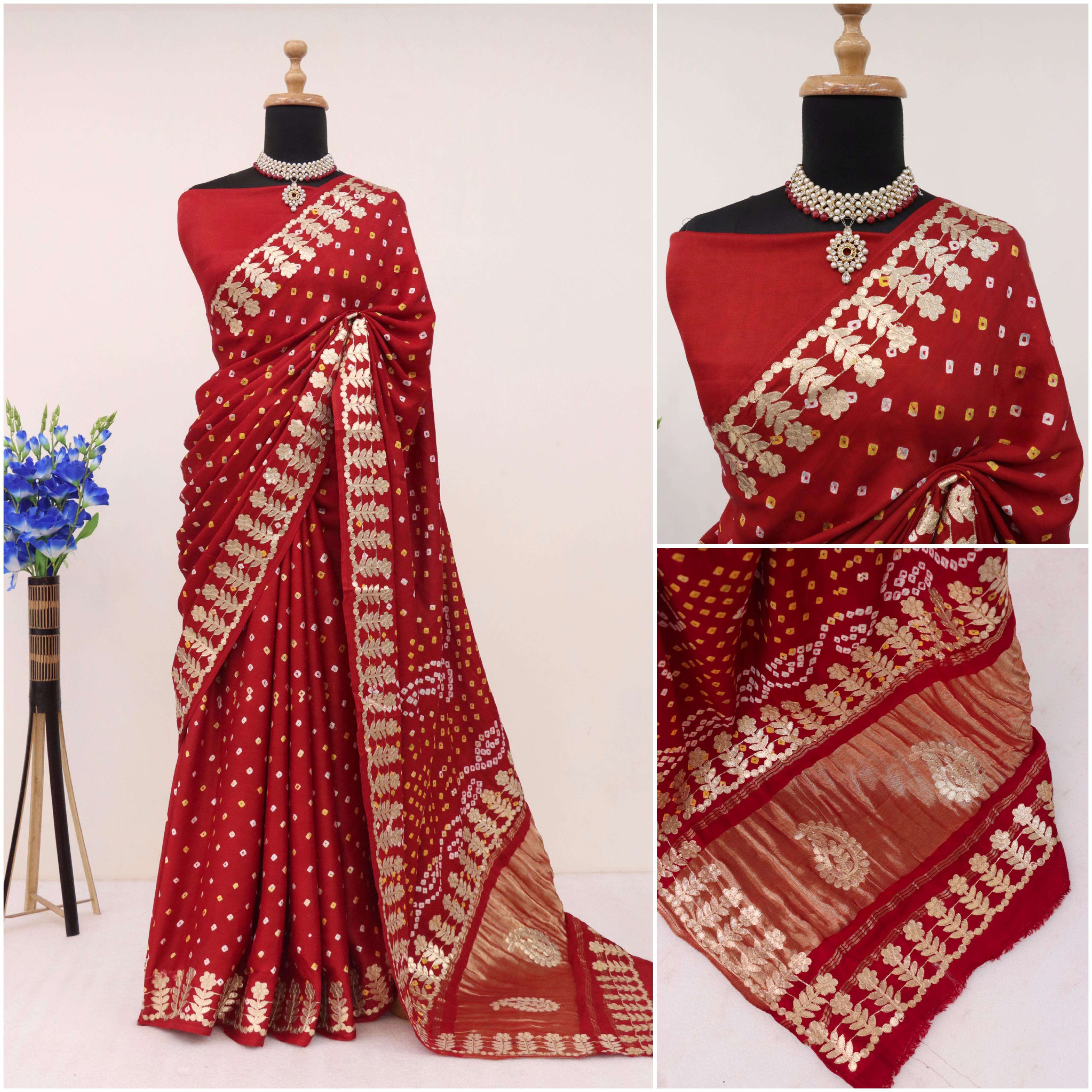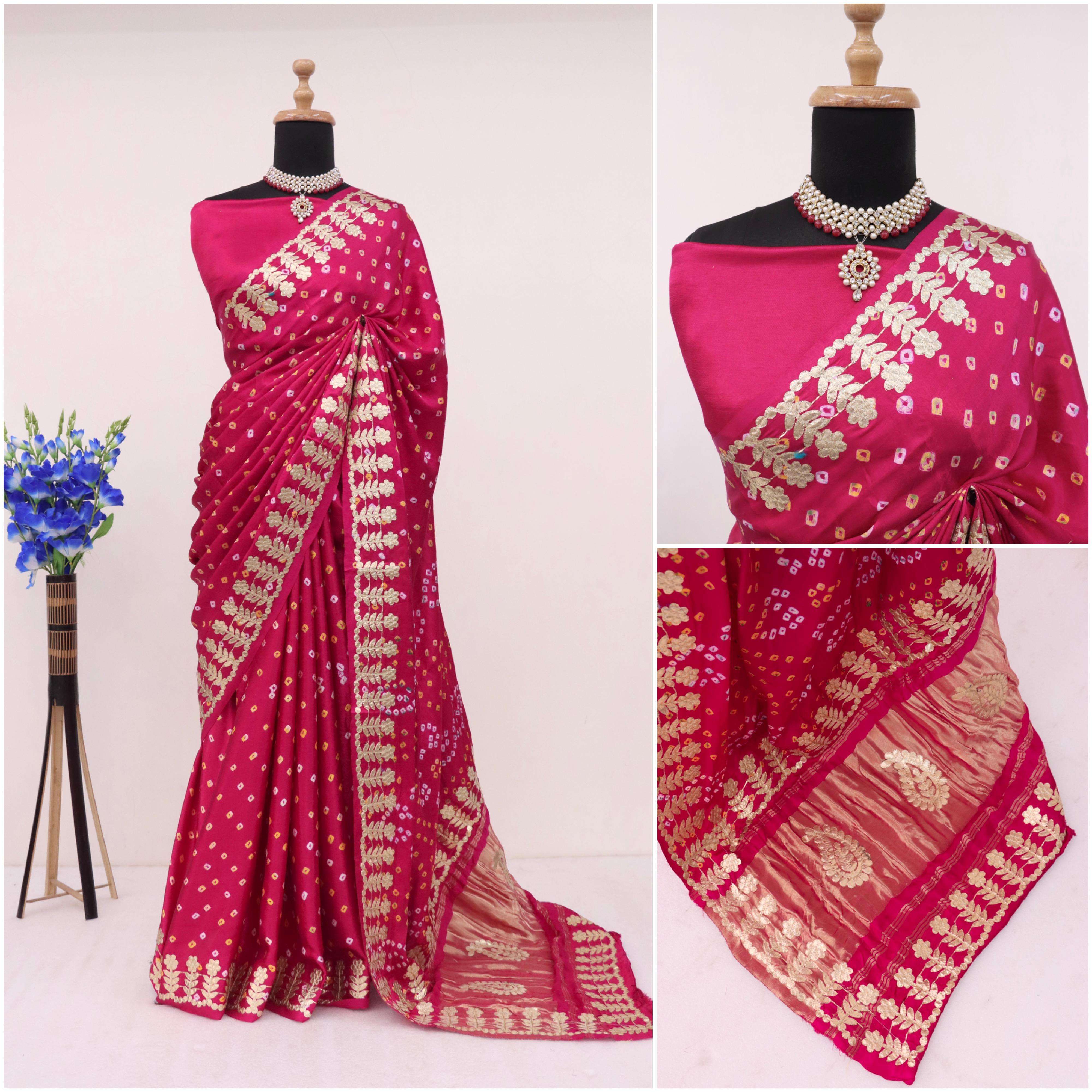 | Title | Bandhej Design Traditional Gota Patti Work Border Wedding Special Saree Best Collection |