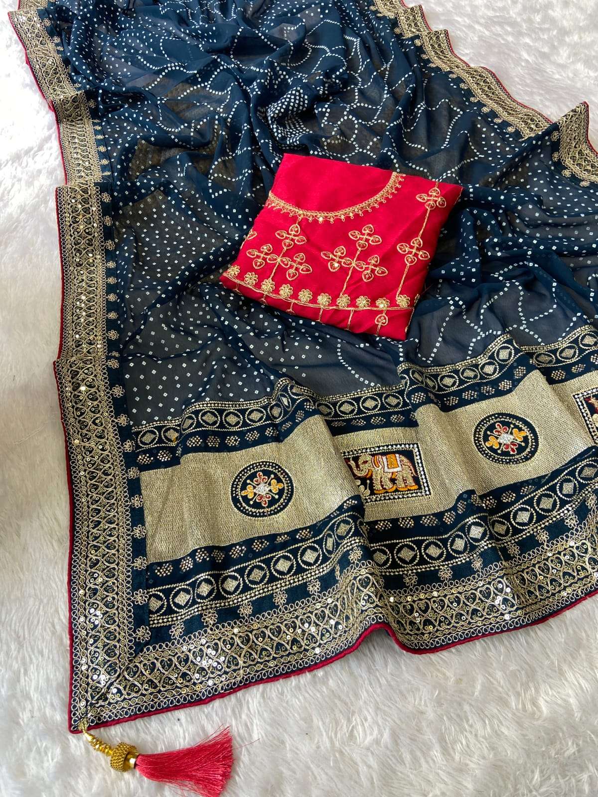 Title | Bandhej Design Vichitra Silk Fabric Traditional Look Saree Best Collection |