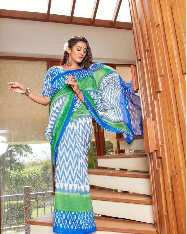 Catalog- *BARKHA* *MUL MUL COTTON PRINT* FABRICS : *Soft Pure Cotton* SAREES : *6.30 MTR PURE COTTON FANCY BAGRU PRINT SAREES WITH BLOUSE PICE* *TOTAL Colour - 7*