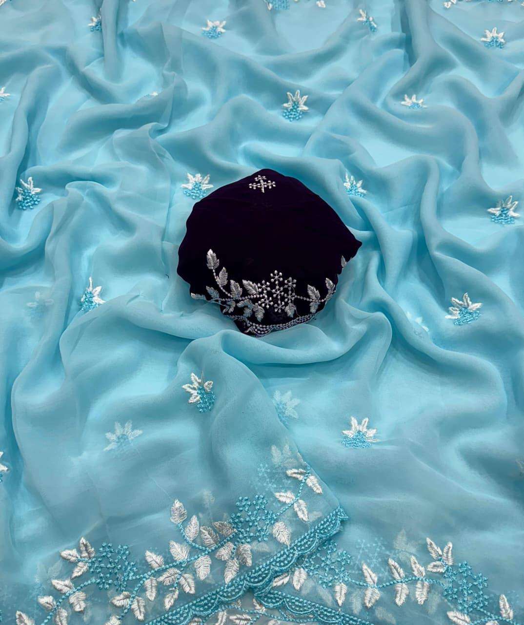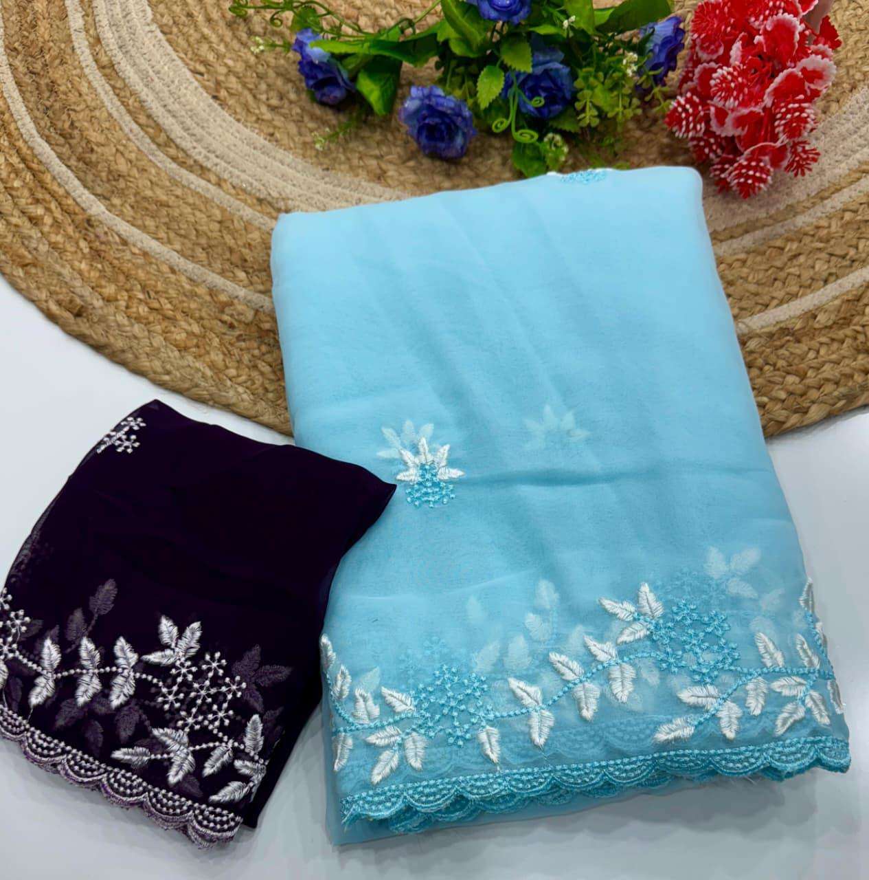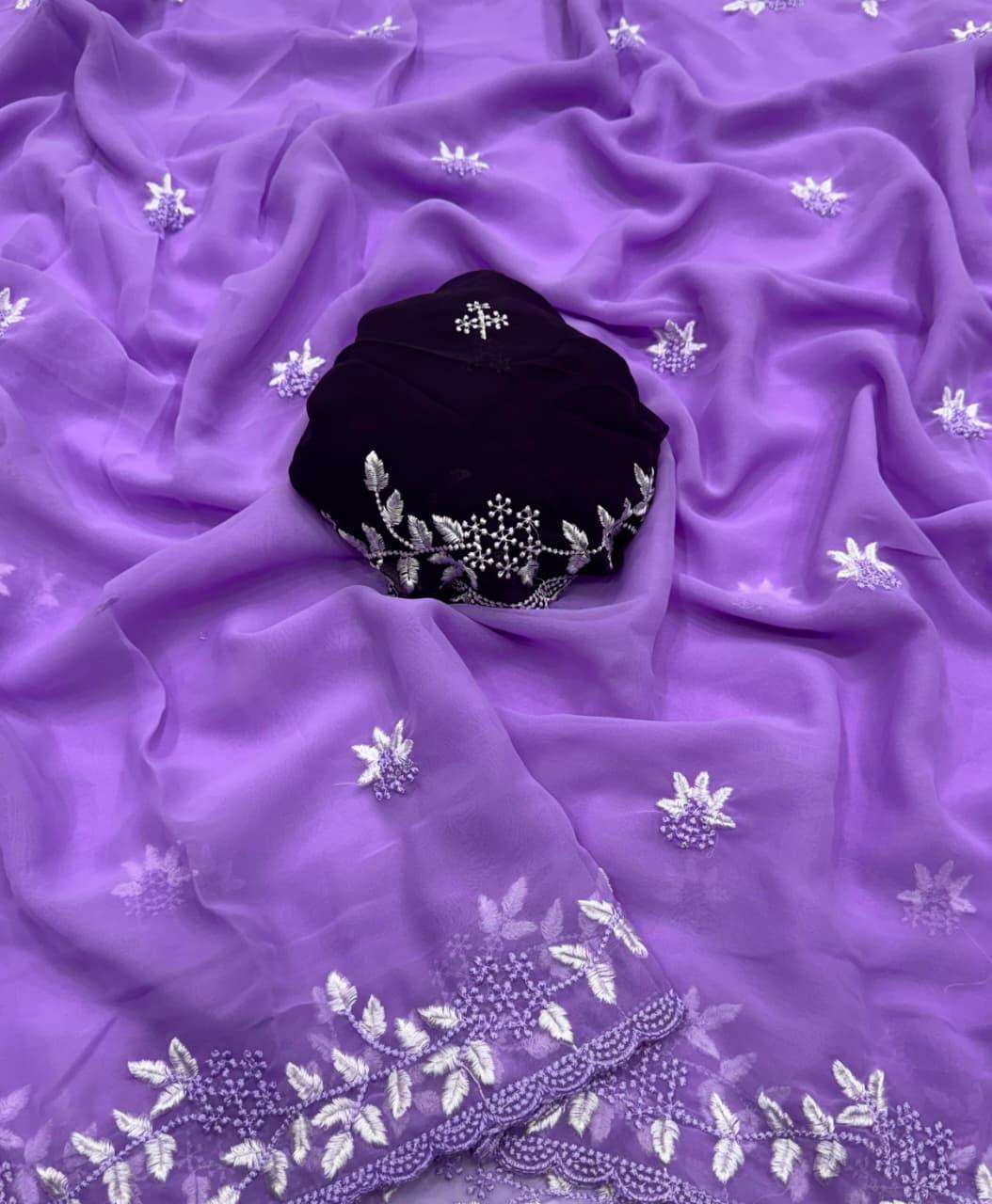BEAUTIFUL EMBROIDERY WORK GEORGETTE FABRIC FANCY LOOK SAREE BEST COLLECTION