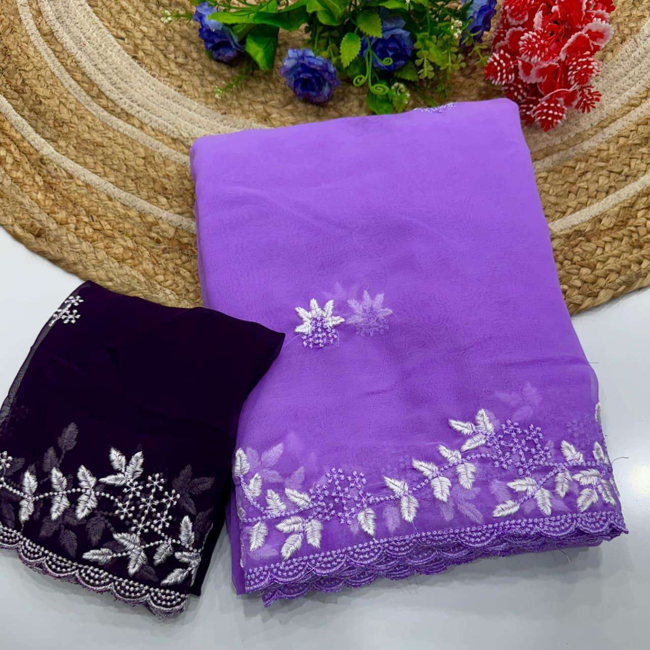 FABRIC - Georgette Saree With Georgette contrast EMBROIDERY Work Blouse. DESIGN 4 SINGLE ALSO AV |