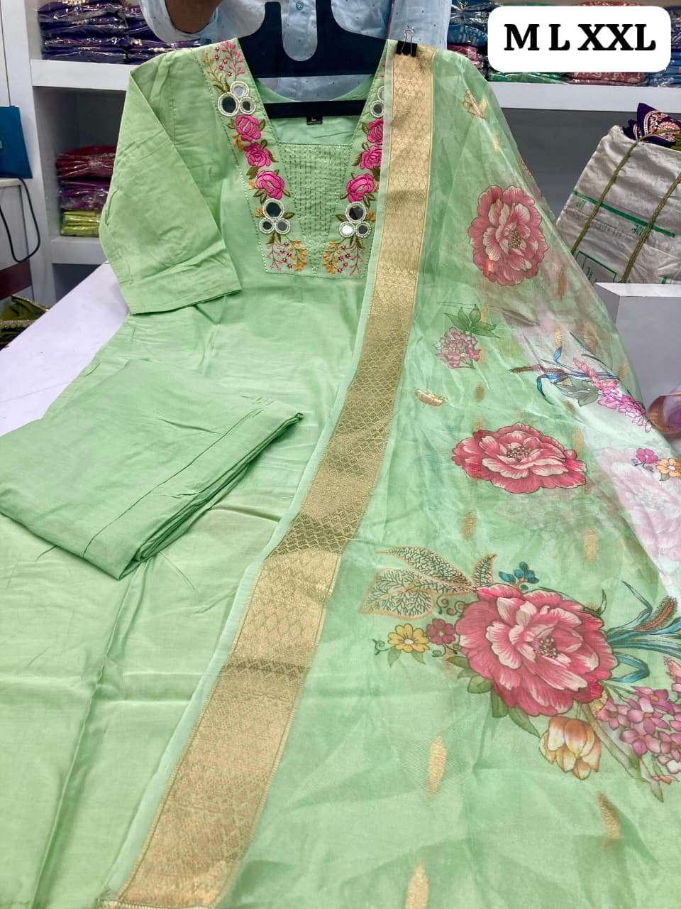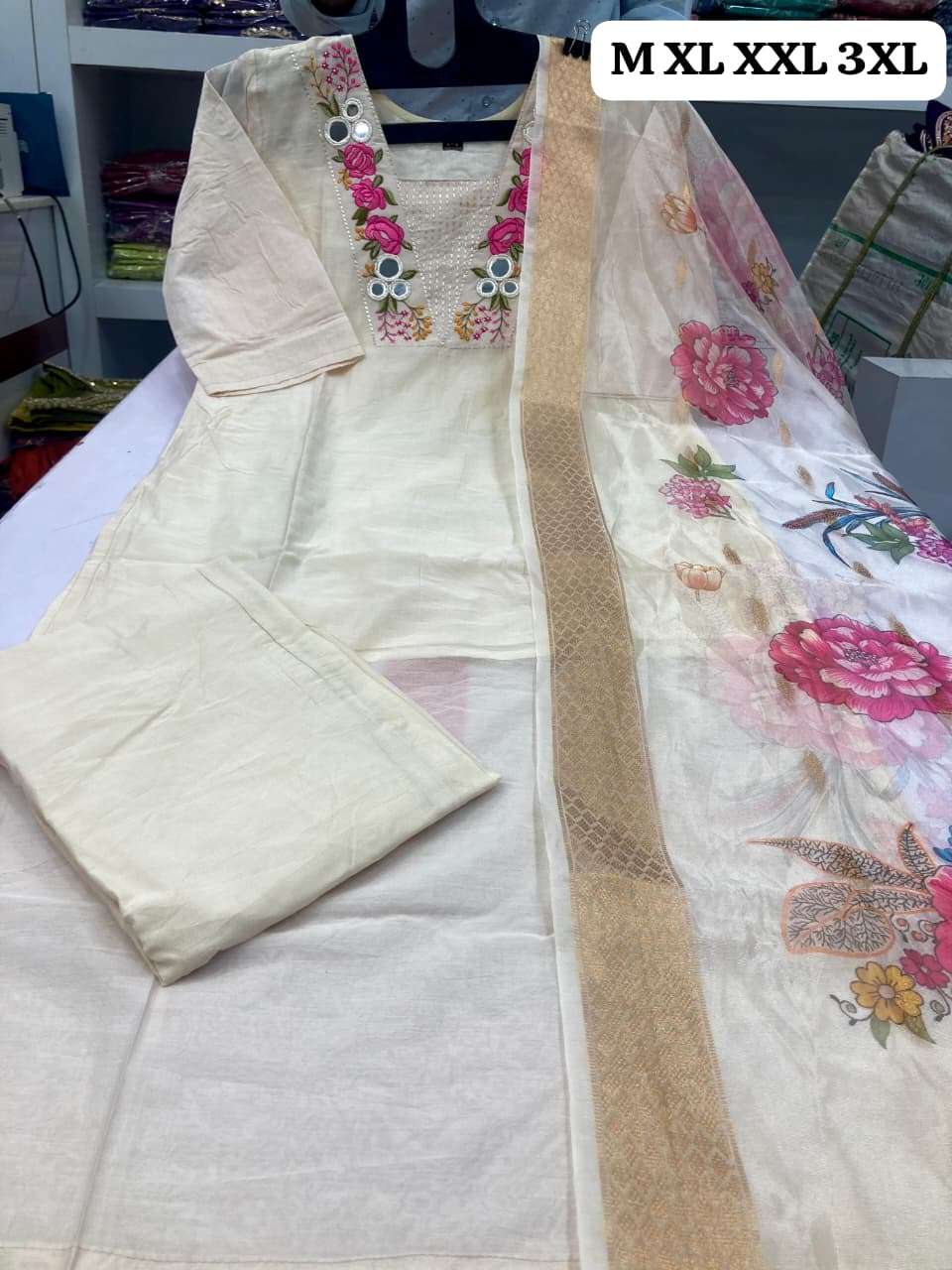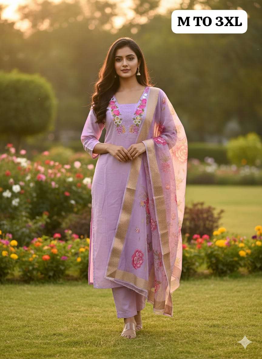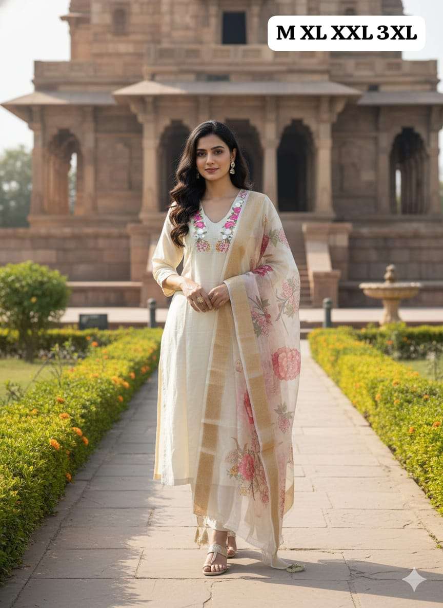 (Beautiful) MULL CHANDERI KURTI PANT DUPATTA BOTTOM FULL COTTON ASSTAR JEQARD ORGENZA PRINT DUPATTA
